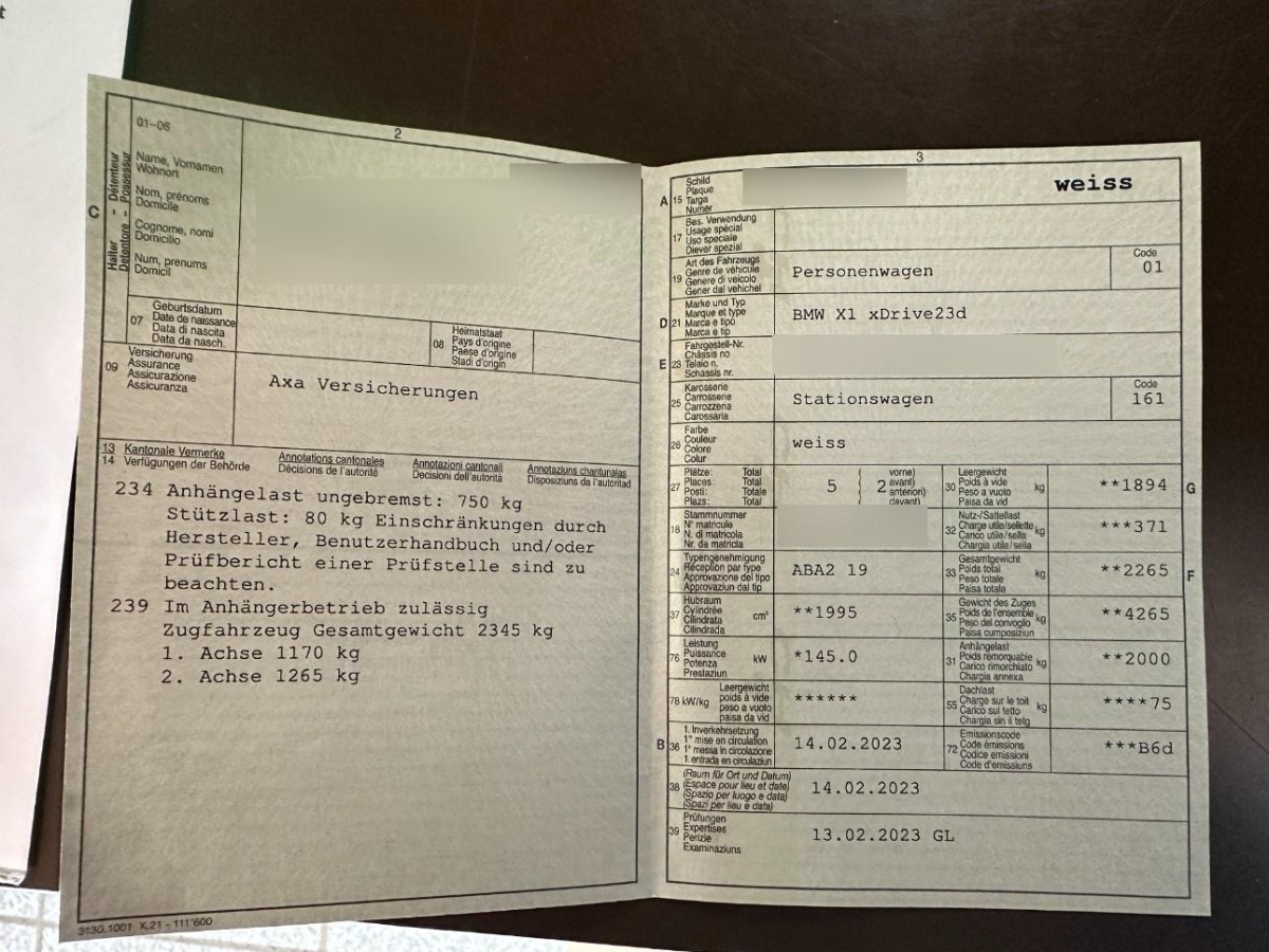 M Hochglanz Shadow Line Ausstattungsumfänge in Schwarz hochglänzend: - Fensterrahmeneinfassung - Fensterschachtabdeckung - Fensterführungssteg Türen vorn - Blende A/B/C-Säule - Spiegelrahmen - Spiegelschwert, Steckdose - 2 x 12 V (in Gepäckraum und Mittelkonsole vorn) - 2 x USB-C-Anschlüsse zum Laden und zur Übertragung von Daten (Mittelkonsole vorn) - 2 x USB-C-Anschlüsse zum Laden (Mittelkonsole hinten), Sitze: Sportsitze für Fahrer und Beifahrer Gegenüber Seriensitz: - spezifisches, sportlicheres Design - Sitz-, Lehnenwangen erhöht - Sitzneigungsverstellung - manuell verstellbare Sitztiefenverstellung, BMW Garantie: Repair Inclusive - 3 Jahre/100.000 km Gültigkeit: 3 Jahre oder 100.000 Kilometer - es gilt das zuerst Erreichte, Licht: Dynamische Bremsleuchten, Heckscheibenheizung, Dekor: Interieurleisten Aluminium Hexacube dunkel mit Akzentleisten Perlglanz Chrom, Licht: LED Scheinwerfer, Antiblockiersystem (ABS), Lackierung: Uni-Lackierung, M Sport Exterieurumfänge - M spezifische Niere in Aluminium satiniert (für PHEV/BEV: Niereninnenrahmen in BMW i-blau lackiert) - Stoßfängerverkleidung vorn mit M Design, in Wagenfarbe und Einsätzen in Schwarz Hochglanz - Stoßfängerverkleidung hinten mit M Design, in Wagenfarbe mit Einsatzteilen in Schwarz Hochglanz - Seitenschwellerverkleidungen mit M Design, in Wagenfarbe - M Kennzeichnung an den Seiten - Einstiegsleisten Aluminiumeinleger mit Schriftzug M(vorne) - Schlüssel mit M Kennzeichnung, 3-Punkt-Sicherheitsgurte auf allen Plätzen, M Sport Interieurumfänge, Ablagemöglichkeiten, Dieselpartikelfilter, Assist: Dynamische Stabilitäts Control (DSC) mit erweiterten Umfängen, Paket: Connected Package Professional, Warndreieck - in der Heckklappe - ECE-Ausführung, Media: ConnectedDrive Services, 2 Cupholder, Mittelkonsole, Airbag: Frontairbagsystem für Fahrer und Beifahrer, Teleservices, Assist: Auto-Hold-Funktion, Auto Start Stop Funktion, Intelligenter Notruf, Sitze: Kindersitzbefestigung i-Size für Beifahrer, Media: BMW Live Cockpit Plus - Widescreen Displaykombination mit 10,25" I-Kombi und 10,7" CID Display BMW Operating System 8 Intuitive Bedienmöglichkeiten: - BMW Intelligent Personal Assistant - Touchbedienung am Control Display - Bedienelemente am Multifunktionslenkrad für Instrumentendisplay, Audio und Telefonie - Tuner mit Diversity-Empfang und RDS - Bluetooth / WiFi Schnittstelle mit Freisprecheinrichtung - 4G LTE Connectivity - Remote Software Upgrade, Licht: Heimleuchten, BMW Mobile Care - BMW Mobile Care: Pannen- und Unfallhilfe - Die BMW Pannen- und Unfallhilfe ist an 365 Tagen im Jahr rund um die Uhr im In- und Ausland für Sie da und das bis zu fünf Jahre nach der Erstzulassung Ihres Fahrzeugs., Assist: Parking Assistant Kamera- und ultraschallbasiertes Assistenzsystem bestehend aus: - Rückfahrkamera - Active Park Distance Control - Parkassistent - Rückfahrassistent - Einparkhilfe Seite, Fussmatten in Velours, Türen: Automatische Heckklappenbetätigung - Elektrisch öffnende/schliessende Heckklappe - Bedienungstasten in Türverkleidung Fahrerseite und Heckklappe - Heckklappenschloss, elektrisch mit Verriegelungsüberwachung, Assist: Aufmerksamkeitsassistent, Fahrwerk: Adaptives M Fahrwerk - straffere Feder-/Dämpferauslegung mit Fahrzeugtieferlegung um 15 mm - Frequenz-selektive Dämpfer: mechanisches selbstregelndes System in Abhängigkeit von Fahrbahnzustand und Fahrweise - M Sportlenkung: direktere Lenkübersetzung mit geringerem Lenkaufwand, Instrumententafel Luxury in Schwarz mit feiner Oberflächen-Strukturierung und grauer Kontrastnaht (in Verbindung mit Alcantara/Sensatec Kombination mit blauer Naht) Umfänge: - Instrumententafel Oberteil und Türbrüstungen vorn, Räder: 18" M Leichtmetallräder Doppelspeiche 838 M Bicolor - 7,5 J×18/Bereifung 225/55 R 18, Räder: Radschraubensicherung, Klima: Klimaautomatik 2-Zonen-Klimaautomatik mit erweiterten Umfängen: - Bedinung über Control Touch Display oder Spracheingabe möglich - intelligente Klimaautomatik - Temperaturregelung für Fahrer und Beifahrer getrennt - Automatikprogramm mit 5 Intensitätsstufen für Fahrer und Beifahrer gemeinsam einstellbar - SYNC-Funktion: Fahrereinstellungen gelten für den gesamten Fahrzeuginn - automatische Umluft-Control - maximales Kühlen für Fahr-Beifahrer gemeinsam - Beschlag- und Solarsensor, Mikro- und Aktivkohle., Reifendruckverlust-Warnsystem, Make-Up-Spiegel-Leuchten, Assist: Dynamische Brems Control (DBC), Condition Based Service, Getriebe: 7-Stufen-Automat Steptronic mit Doppelkupplung, Schliessystem mit Zentralverriegelung inklusive 2 Fernbedienungen mit integriertem Schlüssel, Elektronische Parkbremse, Media: Widescreen Display - Gebogene Displaykombination mit durchgehendem Deckglas bestehend aus einem volldigitalem 10,25" Instrumentendisplay (LCD-Technologie, Auflösung: 1920 x 720) und einem hochauflösendem 10,70" Control Touch Display (LCD-Technologie, Auflösung: 1920 x 960). Inkl. Direktwahltouchpoints, Assist: Cornering Brake Control (CBC), Performance Control, Media: DAB+ Tuner, Assist: Crash-Sensor, Regensensor und automatische Fahrlichtsteuerung, Mittelkonsole mit Ablagefach, Fahrwerk: xDrive, Airbag: Seitenairbag für Fahrer und Beifahrer, M Dachhimmel Anthrazit, Polster: Alcantara-/Sensatec-Kombination, Sitze: Fondsitze, Sitzlehne mit 40:20:40-Klappung, Servotronic, M Dachreling Hochglanz Shadow Line, Lenkrad: M Lederlenkrad, Innenbeleuchtung, Kleiderhaken, hinten, Assist: Active Guard, Licht: Begrüssungslicht, BMW Garantie: BMW Service Plus - Gewährleistung und Gratis-Reparatur bis 100'000 km oder 3 Jahre. Es gilt das zuerst Erreichte - Verschleissreparaturen, wie Ersatz von Bremsbelägen und Bremsscheiben, sowie sonstige Reparaturen übernehmen wir mit BMW Originalteilen während 100'000 km oder 3 Jahren. Zudem profitieren Sie von bis zu sechs saisonalen Räderwechseln (zwei pro Jahr) und dem Austausch der Wischerblätter. - Gratis-Service bis 100'000 km oder 10 Jahre. Es gil