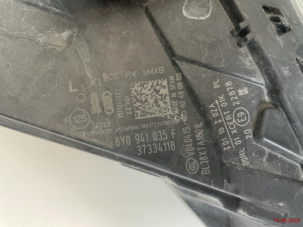 | Schadensbeschreibung | Der Scheinwerfer links (Teilenummer: 8Y0 941 035 F) hat einen Steinschlag gem. Fotos / Der Scheinwerfer wird dem Käufer per Post zugestellt |