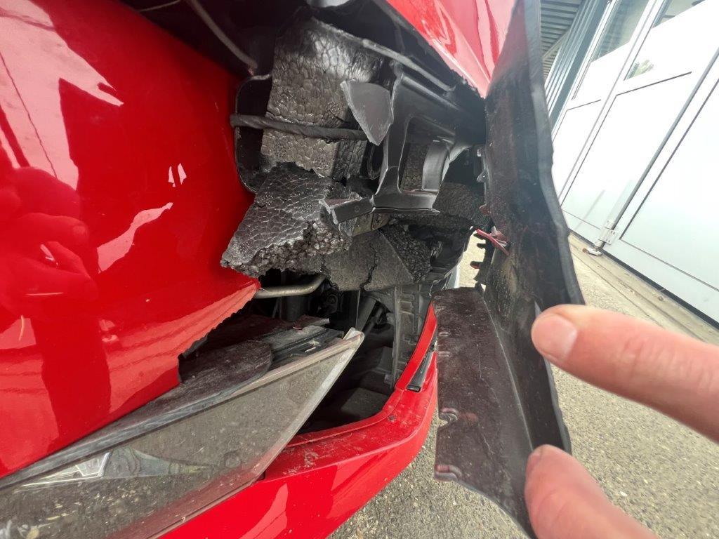 | Schadensbeschreibung | Anprall Front: Dabei wurde die Motorhaube, die Stossstange, der Schlossträger, der rechte Scheinwerfer, die Fahrertüre, der Radarsensor sowie diverse weitere Anbauteile im Anprallbereich beschädigt. / Vorschäden: Stossfänger hinten, Gebrauchsspuren |