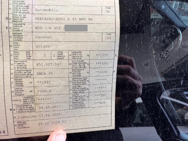 Wichtige HinweiseZustandFahrzeug muss transportiert werden [Höhe und Breite beachten]. Fahrzeug ist NICHT fahrbar. Schlüssel Nur ein Schlüssel vorhanden. BeschädigungenAchse Risiko Vorderachse. Sonstige Schäden Div.Carrosserie Teile sind leicht beschädigt. Hagel Hagelschaden mittel. AusstattungSerienaustattung Airbag Fahrer und Beifahrerseite Elektronische Wegfahrsperre Sportsitze Elektrische Fensterheber Aussenspiegel elektrisch verstellbar und heizbar ABS Antiblockiersystem Seitenairbag Fahrer und Beifahrerseite Aussentemperaturanzeige Reifendruck-Kontrollsystem RDK Zentralverriegelung mit Innenschalter Klimaanlage mit Pollenfilter Isofix-Vorbereitung Rücksitze aussen Einzeln abklappbare Rücksitzlehnen 60/40 AMG Sportfahrwerk Knieairbag Fahrer Tempomat inklusiv Speedtronic Berganfahrhilfe AMG Velours-Fussmatten Windowbags vorne Start + Stopp Funktion Attention Assist ESP inkl. ASR Keine Gewähr auf die Angaben der Serienausstattungen Sicherheitsgurte designo Pack Sitzkomfort Radio/ Audio 20 LED-Scheinwerfer High Performance Keyless-Go Start Funktion Sitzbezüge Mikrofaser/ Ledernachbildung Artico Dynamic Select Leichtmetallräder 18" AMG 10-Speichen Aktiver Brems-Assistent SonderausstattungSitzheizung vorne Metallic-Lackierung Klimaautomat Thermotronic Ambientebeleuchtung Rückfahrkamera Wärmedämmendes Glas dunkel getönt Sound -System Surround Bremszangen rot lackiert DAB Radio [Digital Audio Sendung] Aktiver Parkassistent mit Parktronic Reifenreparaturkit/ Tirefit Deaktivierung Beifahrerairbag Pack Spiegel AMG Performance Lenkrad in Leder/ Alcantara Leichtmetallräder 19" AMG Vielspeichen mattschwarz Pack Licht u. Sicht Pack AMG Night Adaptiver Fernlichtassistent Heckflügel AMG Performance Abgasanlage AMG Performance Sitze Remote Online Media-Display |