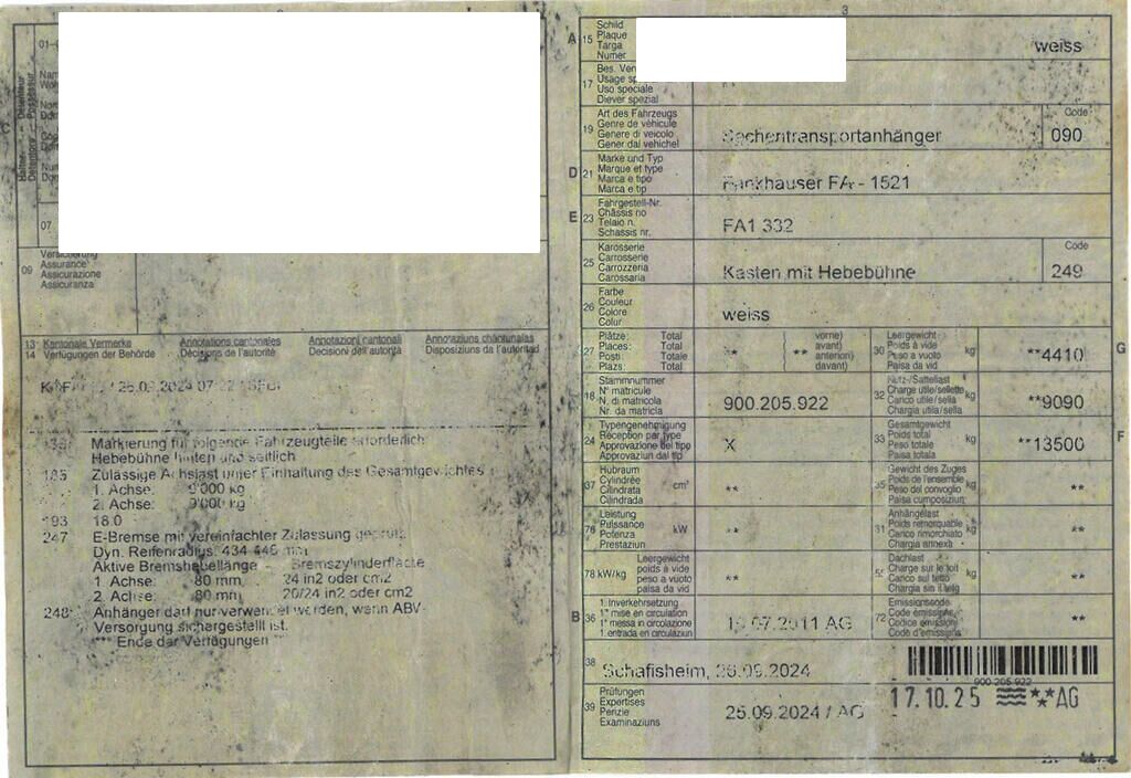 Fankhauser FA-1521 Kasten mit Hebebühne ID 464548