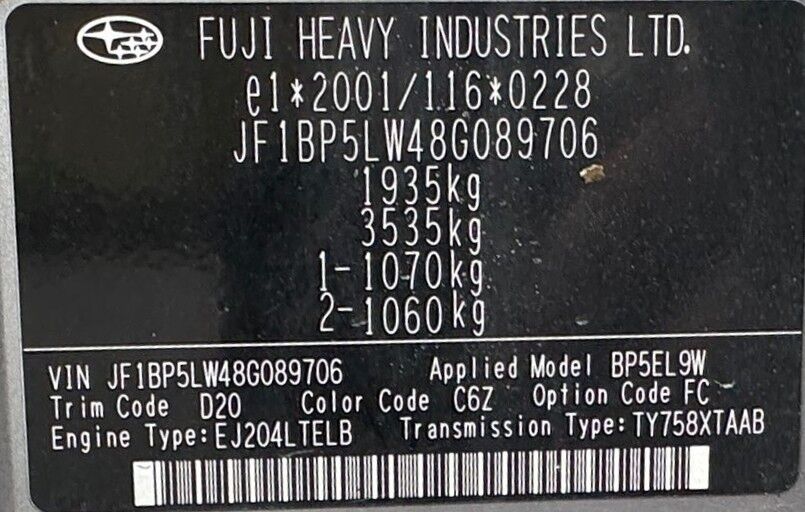 | Podwozie: | JF1BP5LW48G089706 |