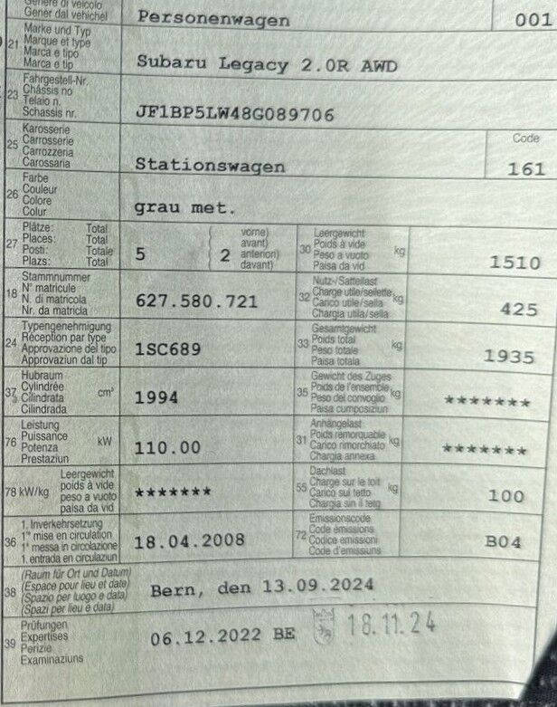 | Model: | LEGACY 2.0R AWD SWISS |