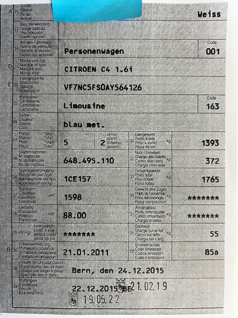 | Koszt naprawy: | 0.00 CHF |