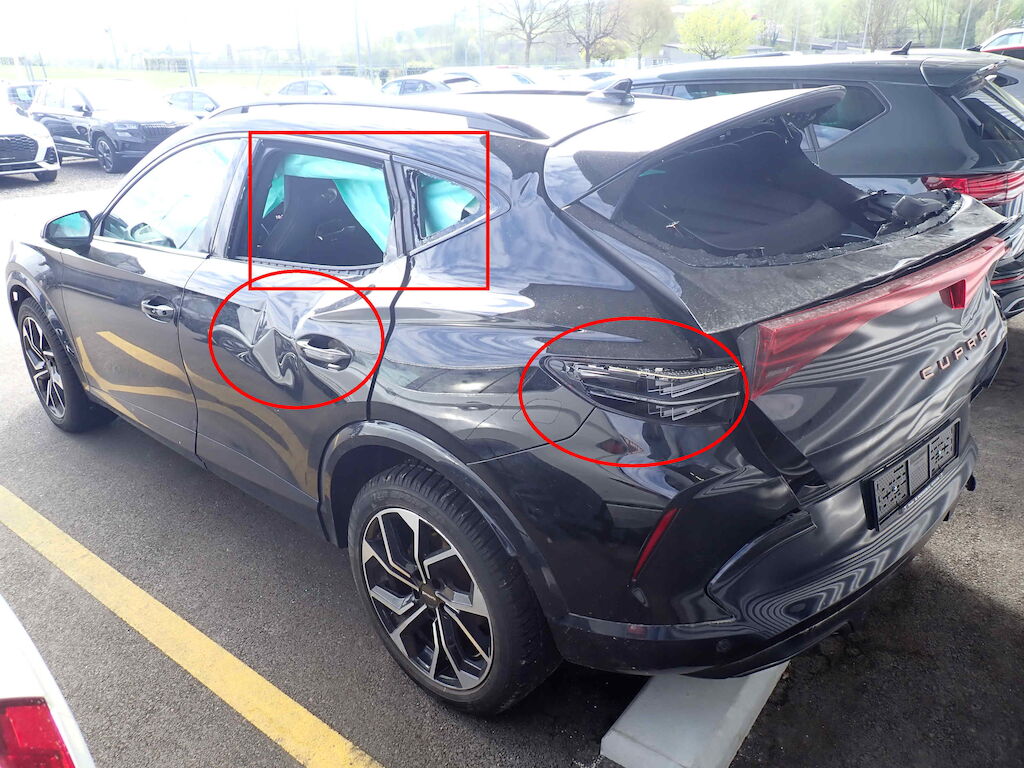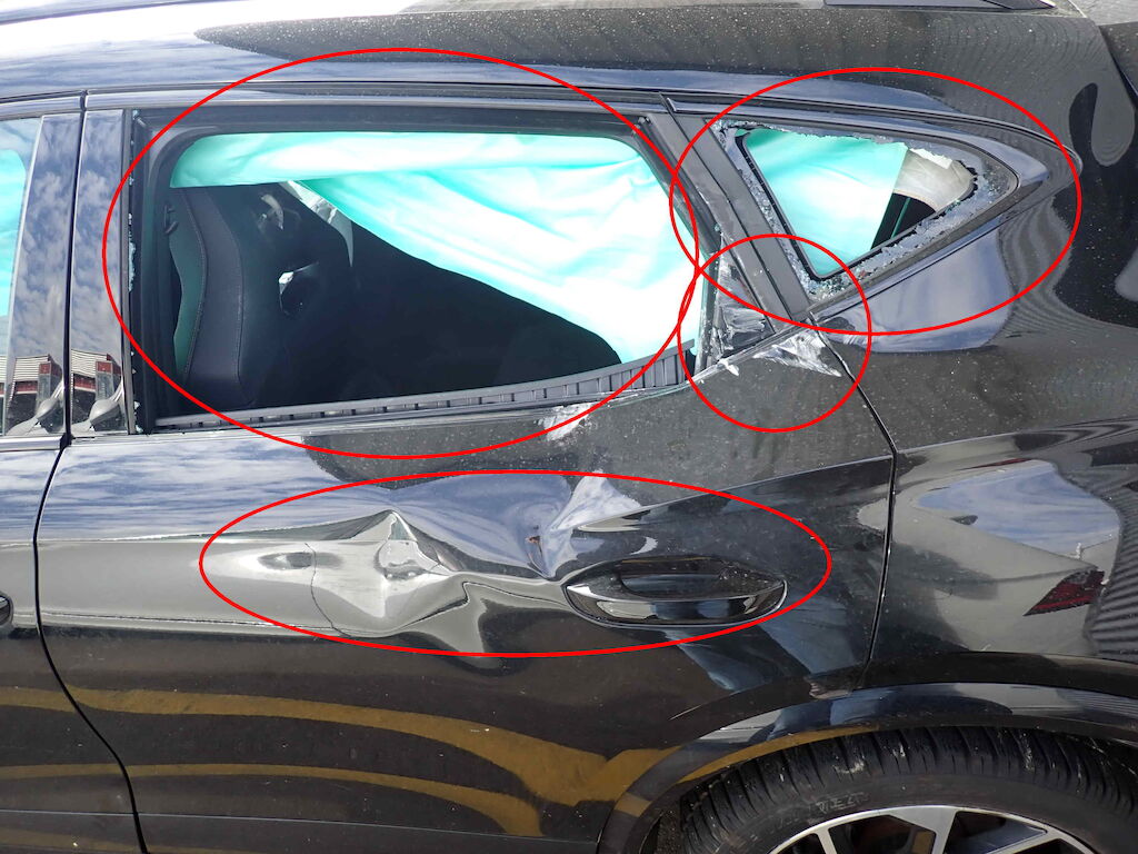 | Opis uszkodzen: | Fort choc arrière droit. Airbag rideau et siège déclenché Porte et vitre arrière gauche endommagées |