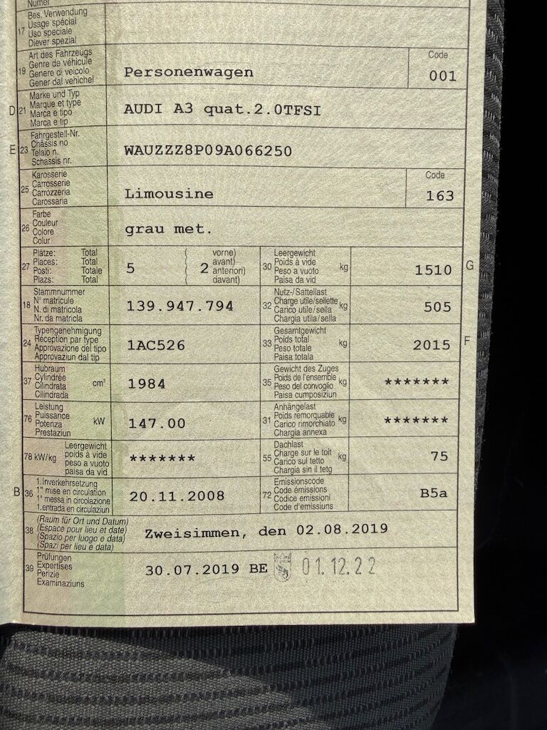 | Model: | A3 Sportback Quattro 2.0 TFSI |