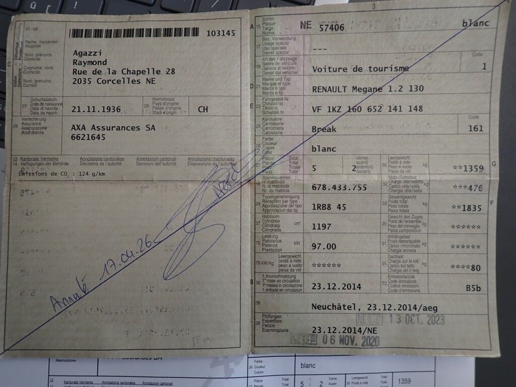 | Koszt naprawy: | 0.00 CHF |