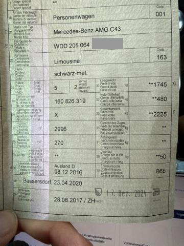 Wichtige HinweiseBeschädigungenHeck Heck eingedrückt. Seitenwand hinten links eingedrückt/ausgestaucht. Heckblech eingedrückt. Heckklappe eingedrückt. AusstattungSerienaustattung Airbag Fahrer und Beifahrerseite Elektronische Wegfahrsperre Elektrische Fensterheber vorne + hinten Aussenspiegel elektrisch verstellbar und heizbar Bordcomputer Wärmedämmendes Glas ABS Antiblockiersystem Seitenairbag Fahrer und Beifahrerseite ESP Elektronisches Stabilitätsprogramm Aussentemperaturanzeige Lenkrad verstellbar Windowbag Multifunktionslenkrad Reifendruck-Kontrollsystem RDK Zentralverriegelung mit Innenschalter Isofix-Kindersitzbefestigung Klimaautomat Thermatic Pack Innenraum-Licht Dachhimmel schwarz Knieairbag Fahrer Tempomat inklusiv Speedtronic Instrumententafel in Ledernachbildung Artico Start + Stopp Funktion Treibstofftank 66 Liter AMG Ride Control/ Sportfahrwerk Keine Gewähr auf die Angaben der Serienausstattungen Sport-Abgasanlage Radio/ Audio 20 Sitzbezüge Mikrofaser/ Ledernachbildung Artico Dynamic Select SonderausstattungStandheizung Sitzheizung vorne Fahrersitz elektrisch verstellbar mit Memory Beifahrersitz elektrisch verstellbar mit Memory Metallic-Lackierung Scheibenwischer mit Regensensor Klimaautomat Thermotronic Scheibenwaschanlage beheizt Ambientebeleuchtung Wärmedämmendes Glas dunkel getönt Pack Ablage Head-Up Display Rücksitze geteilt umklappbar 40/20/40 Aktiver Parkassistent mit Parktronic Pack Spiegel Komfortschliessung Kofferraum Pack Night Pack Fahrassistenz Plus Analoguhr Verbundsicherheitsglas mit Akustikfolie Burmester Surround-Soundsystem Keyless-Go Start Funktion Keyless-Go/ Zugangs und Fahrberechtigungssystem Remote Online AMG Zierteile Carbon/ Aluminium Pack Designo Interieur LED Intelligent Light System Adaptiver Fernlichtassistent Plus Pack Sound Komfort |