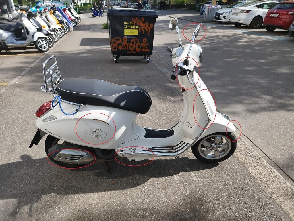 | Opis uszkodzen: | Der Kotflügel vorne rechts hat Kratzspuren, der Spiegel rechts hat Kratzspuren, der Bremsgriff rechts hat Kratzspuren, der Rahmen vorne rechts hat Kratzspuren, die Chromleiste vorne rechts ist abgerissen, das Trittbrett rechts hat Kratzspuren, der Fussraster hinten rechts ist abgerissen, der Rahmen unten rechts hat Kratzspuren, der Rahmen hinten rechts hat Kratzspuren und eine Delle, der Auspuff hat Kratzspuren. Weitere Details zum Schadenfall gehen aus den beiliegenden Fotos hervor. |