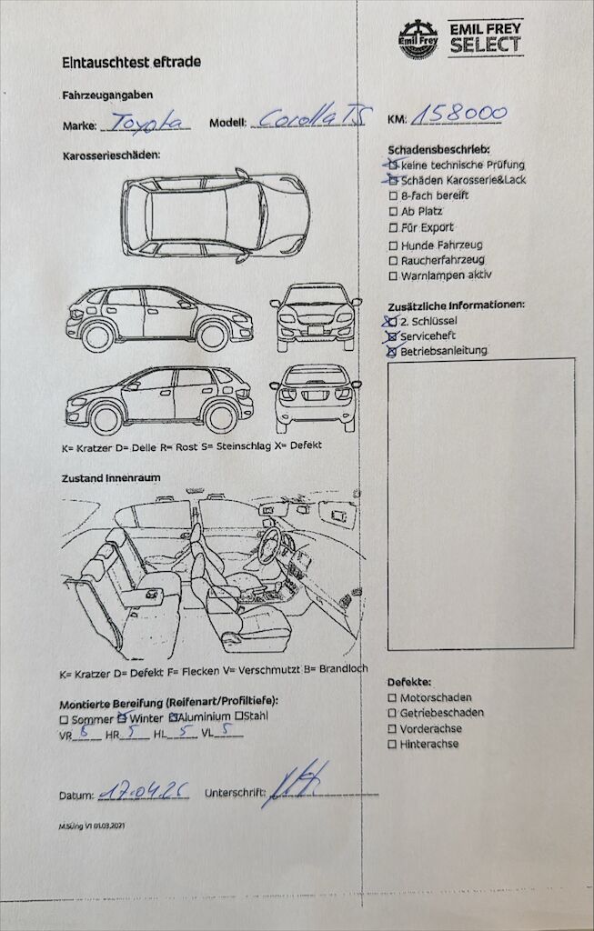 | Opis uszkodzen: | Keine technische Prüfung (Werkstatttest) vorgenommen Diverse Schäden an Karosserie/Lack. Fahrzeug ab Platz, ohne Garantie und Aufbereitung. Kühlwasserstand leer Heizung ohne Funktion. Wenn Kühlwasser gefüllt ist funktioniert diese 30 min. Fahrzeug raucht/dampft stark. Wärmetauscher muss ersetzt werden |
