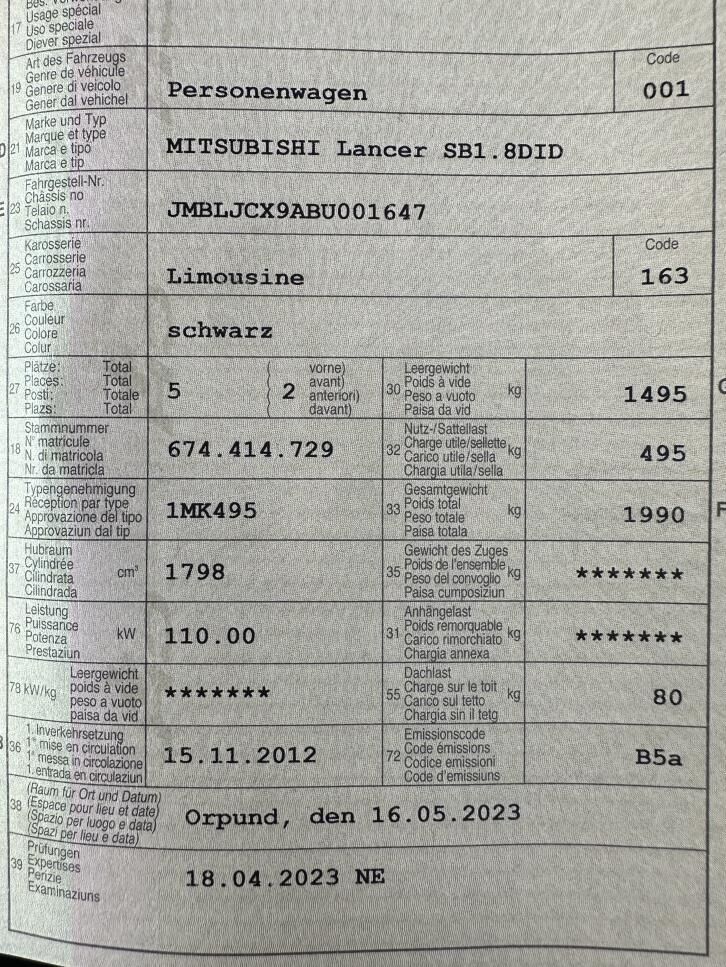 | Model: | Lancer Sportback 1.8 DID Diamond |
