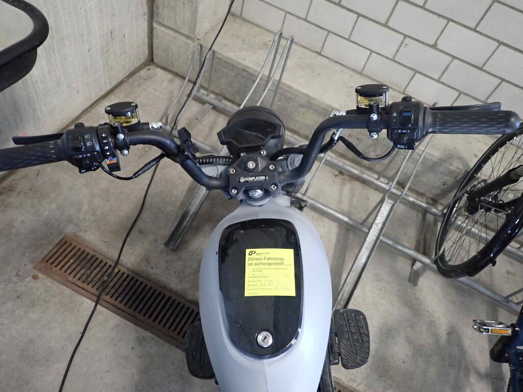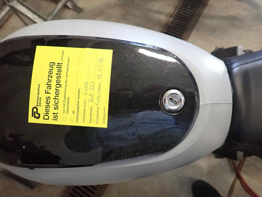 | Opis uszkodzen: | Einbruchspuren an den Schlösser Zündschloss, Handschuhfach und Batteriekasten. Die Schwinge HR weist einen Lackschaden auf. Der gesamte roller wurde in sehr schlechte Qualität auf grau umlackiert |