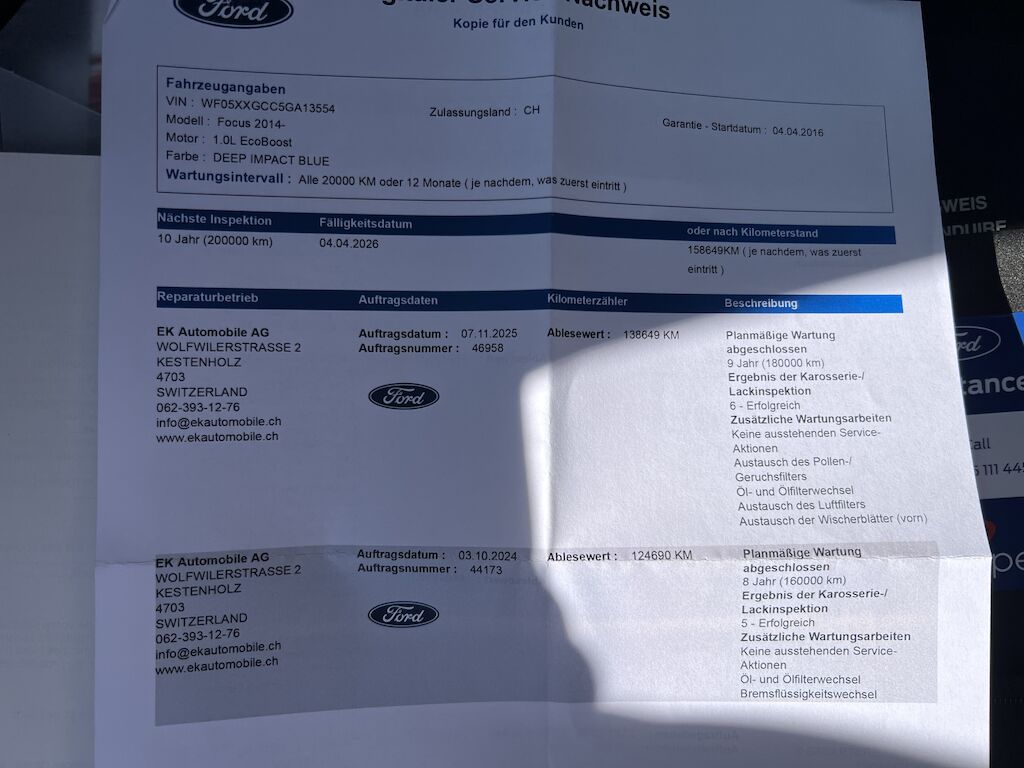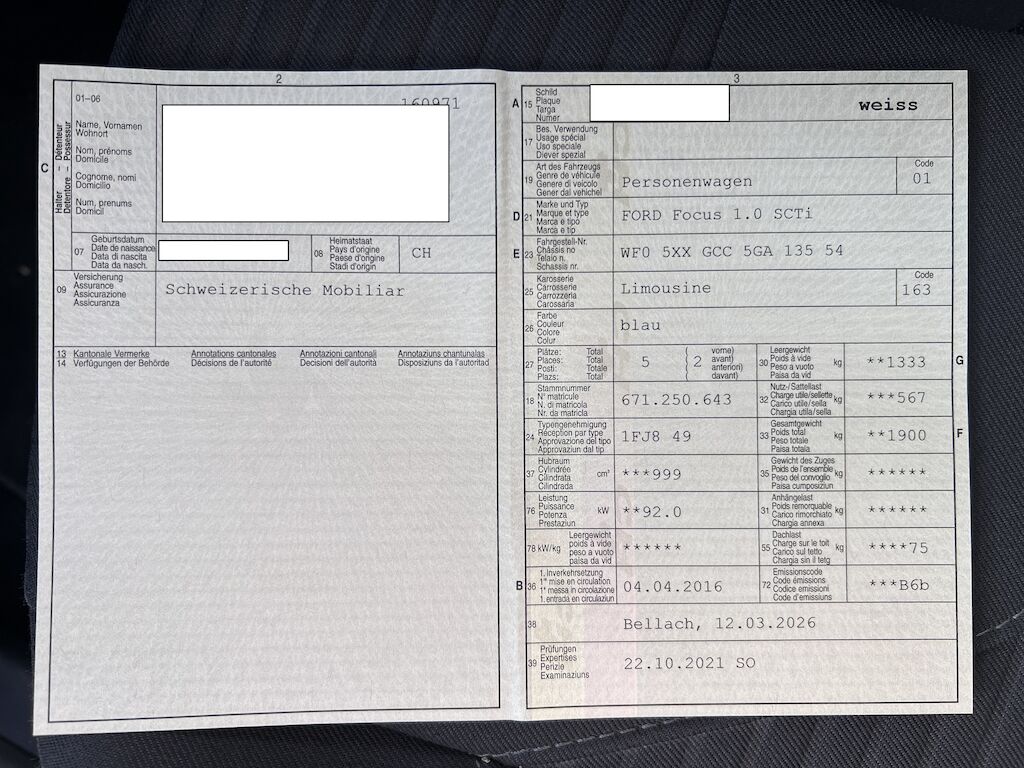 | Koszt naprawy: | 0.00 CHF |