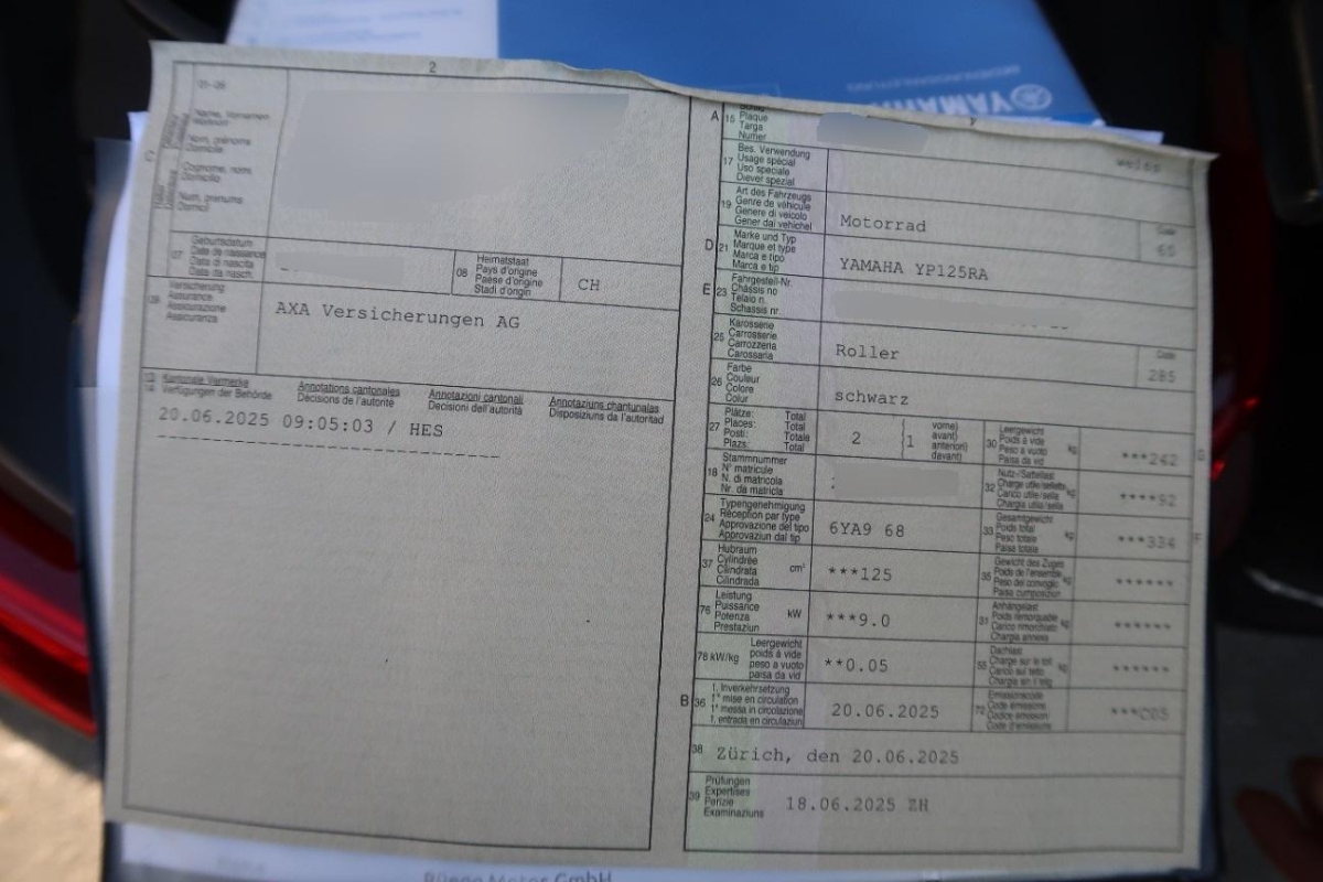 | Fahrzeugausweis | Vorhanden |
