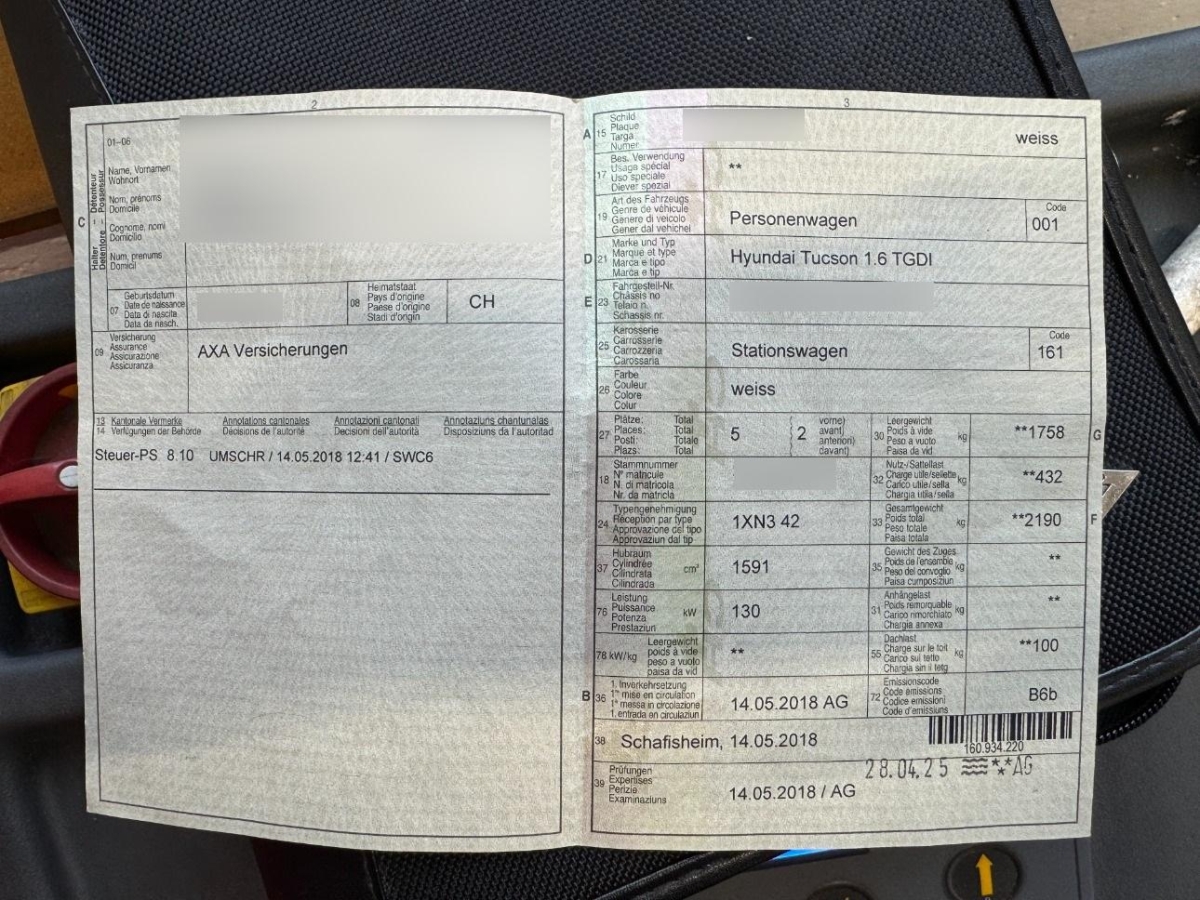 | Fahrzeugausweis | Fehlt |