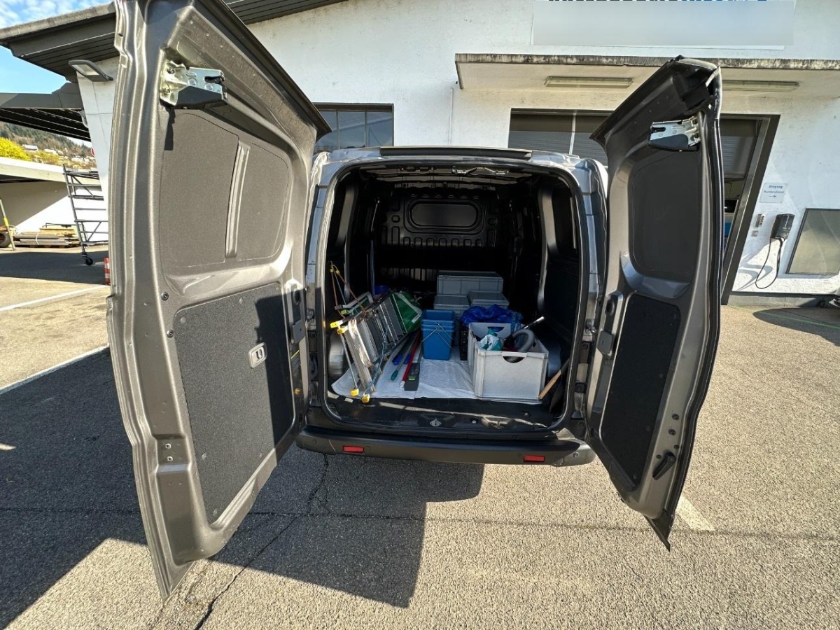 5-Gang-Getriebe, Airbag: Airbag Fahrerseite, Antiblockiersystem (ABS), Aussenspiegel rechts und links elektrisch verstellbar, Befestigungsösen im Laderaum, Bordcomputer, Bremsassistent (BAS), Drehzahlmesser, Elektrische Fensterheber vorne, Elektronisches Stabilitäts-Programm (ESP), Flügeltüren hinten 180°, Gurtstraffer vorne, Lackierung: Uni-Lackierung, Laderaumbodenbelag aus Gummi, Laderaumtrennwand ohne Fenster, Lenkrad höhenverstellbar, Lichtwarnsummer, Partikelfilter und Oxydationskatalysator, Radiovorbereitung, Antenne, Entstörung und 2 LS, Scheibenwischer vorne mit Intervall, Schublade unter Fahrersitz, Servolenkung, Stoff-Ausstattung, Türen: Schiebetüre rechts, Vollwertiges Ersatzrad, unter dem Fahr- zeug montiert, Wegfahrsperre elektronisch, Zentralverriegelung mit Fernbedienung