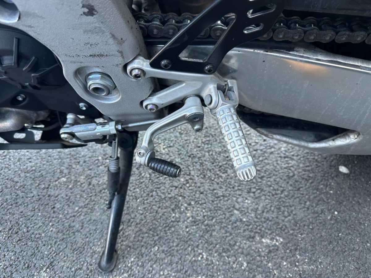 Auspufftopf, Aussenspiegel links, Diverse Anbauteile, Front, Fussraster links, Fussraster rechts, Gabelholm, Griff rechts, Kupplungsgehäuse, Kühler, Lenkanschlag, Lenker, Scheinwerfer, Schutzblech vorne, Schwinge, Seite rechts, Verschalungen rechts, Verschalungen vorne, Windschutzscheibe