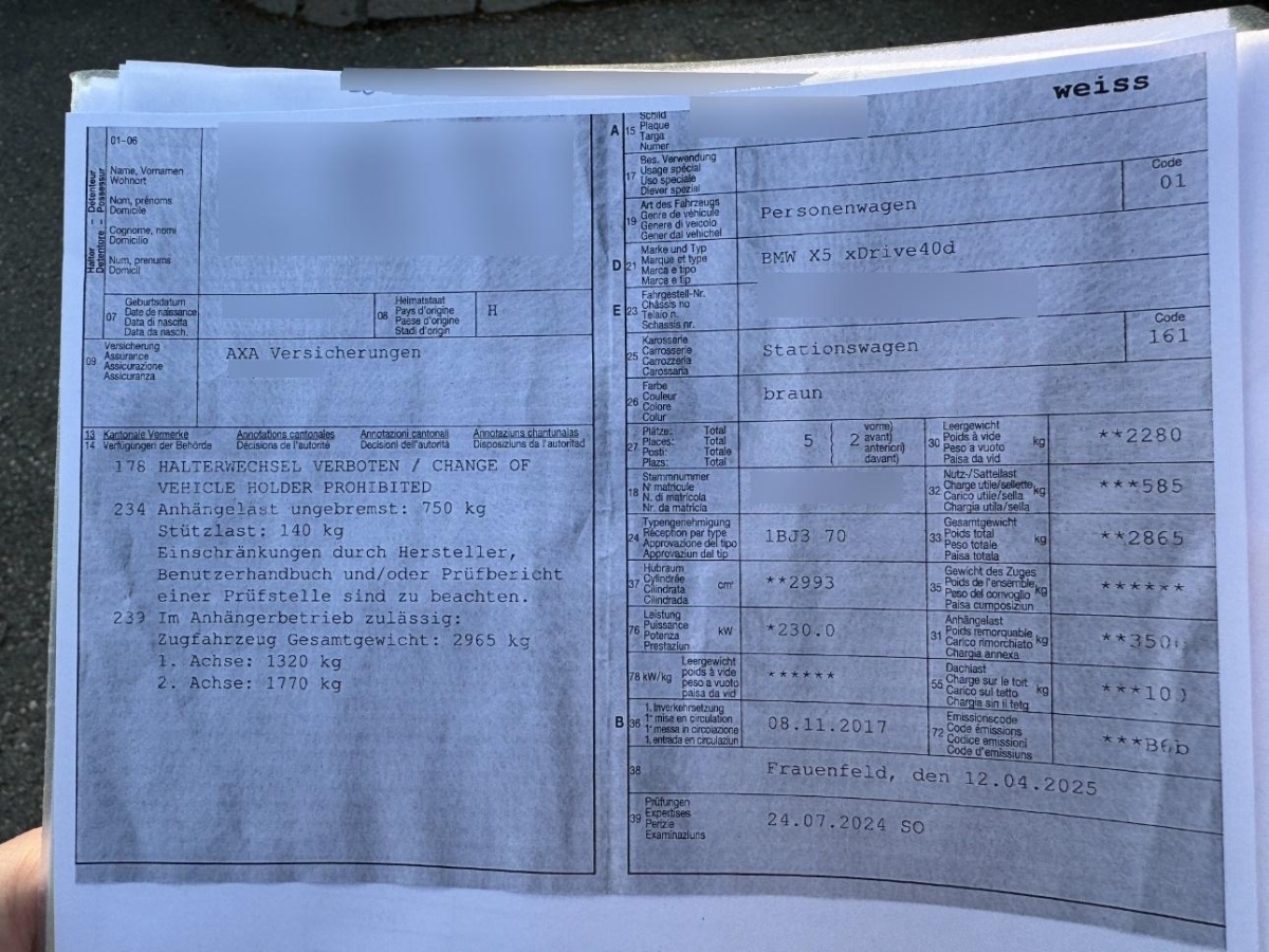 | Fahrzeugausweis | Vorhanden |