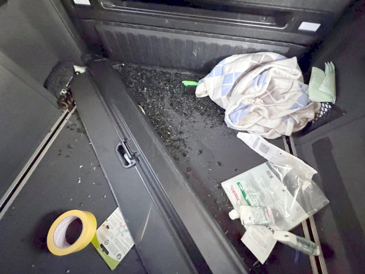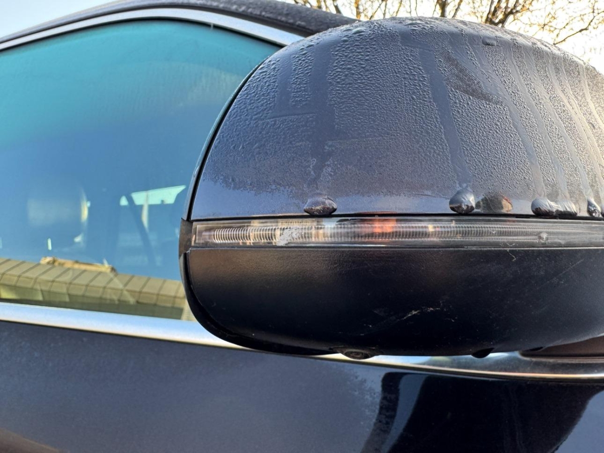Das Fahrzeug hat rundum kleine Dellen, Beulen und Lackschäden, Heckscheibe
