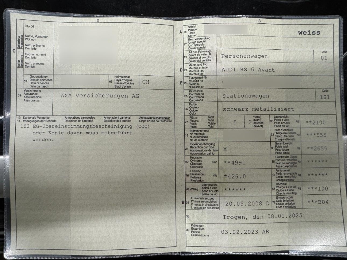| Fahrzeugausweis | Vorhanden |