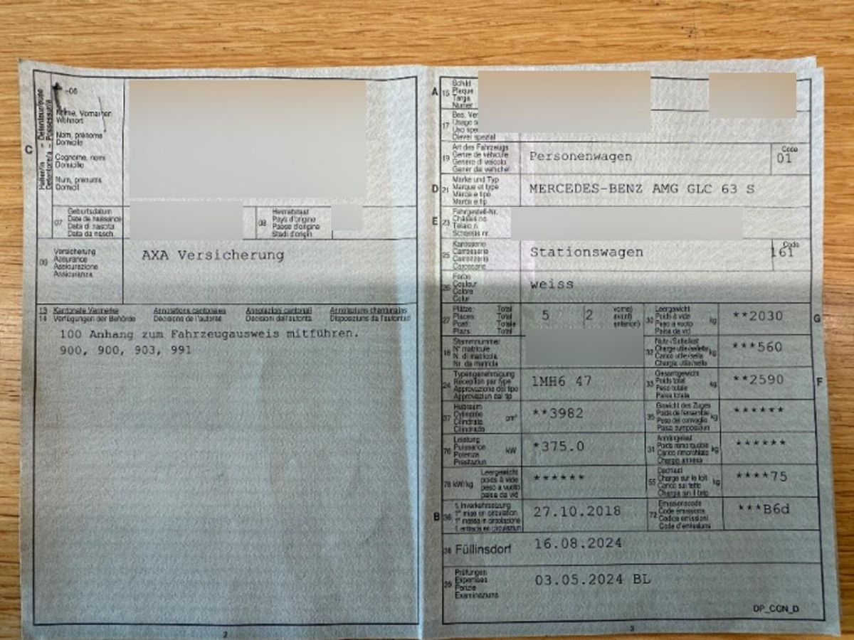 | Fahrzeugausweis | Vorhanden |