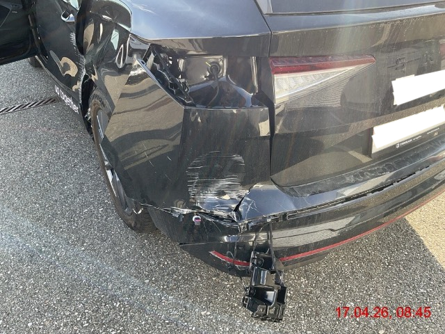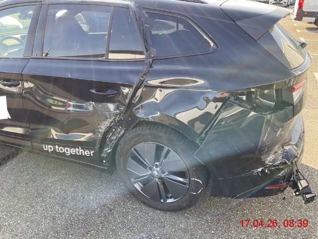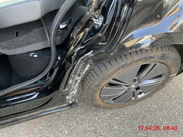 | Schadensbeschreibung | Seitenschaden links: Tür hinten eingedrückt, Seitenwand stark eingedrückt, Reifen hinten beschädigt, Stossstange hinten gerissen und zerkratzt. AUFZÄHLUNG NICHT ABSCHLIESSEND / Vorbestandene Schäden: Gebrauchsspuren |