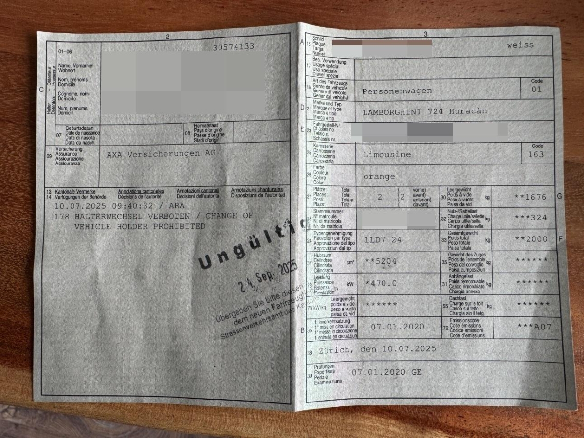 | Fahrzeugausweis | Vorhanden |