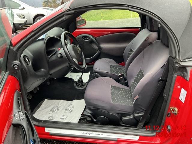 Cabriolet-Verdeck aus Stoff, AUDIO 6000 RDS Radio/CD mit LS, Servolenkung, Seitenairbags, Räder: 4 Leichtmetallfelgen 16J mit Pneu, Sitze: Fahrersitz höhenverstellbar, Drehzahlmesser, Lenkrad: Sport-Lederlenkrad, Katalysator geregelt, Leuchtweitenregulierung von innen, Einstiegsschienen, Getönte Scheiben, Wegfahrsperre elektronisch, Teppichfussmatten, Kofferraumfernentriegelung, Wassertemperaturanzeige, Räder: Notrad, Überrollbügel, Zentralverriegelung mit Fernbedienung, Elektrische Fensterheber vorne, Licht: Nebelscheinwerfer, Antiblockiersystem (ABS), Airbag: Beifahrer deaktivierbar, Airbag: Fahrer und Beifahrer, Getriebe: 5-Gang-Getriebe, Schalthebelknauf aus Aluminium, Tageskilometerzähler, Lichtwarnsummer, Aussenspiegel rechts und links beheizbar und elektrisch verstellbar, Analog-Uhr