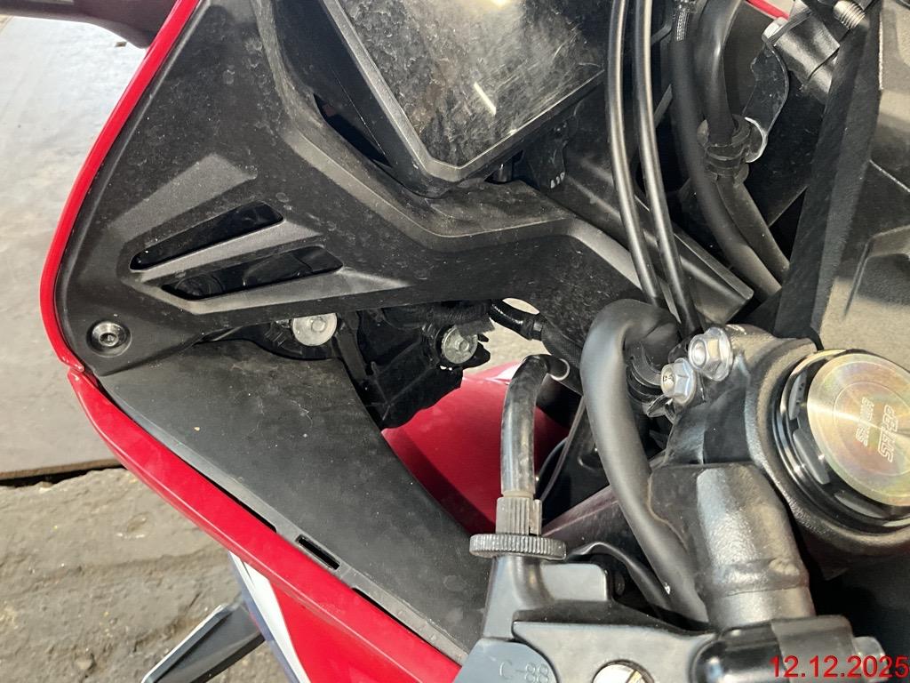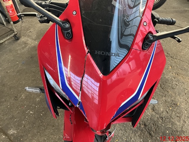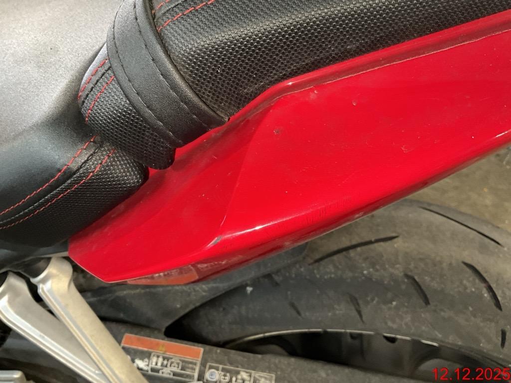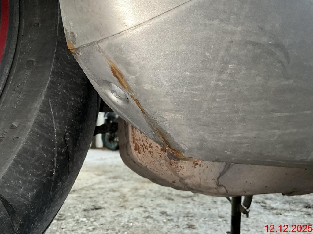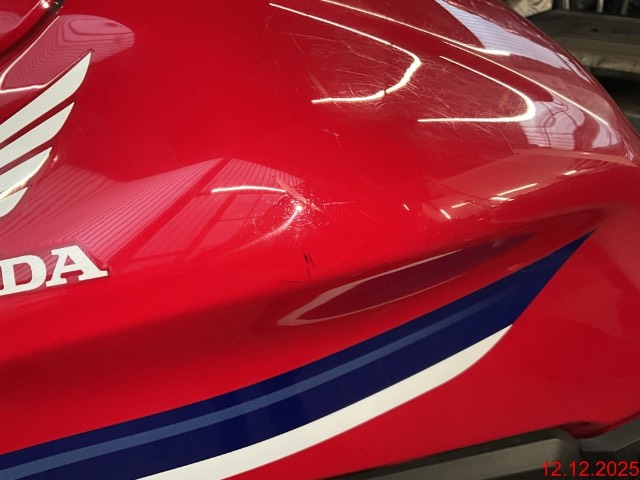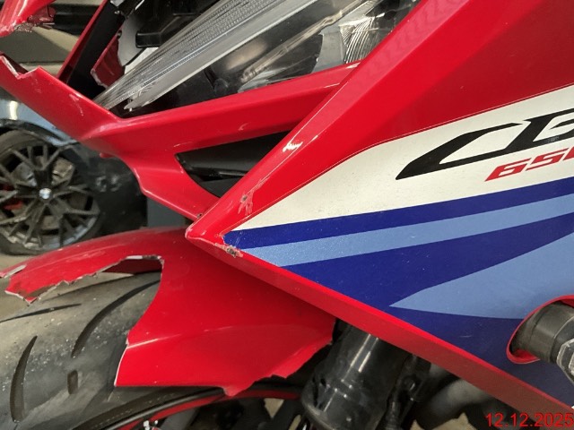 | Schadensbeschreibung | Front eingedrückt. Verkleidgungen beidseitig gebrochen, Scheinwerfer gebrochen, Cockpit Halterungen gebrochen (Instrument lose), Scheibe beschädigt, Radabdeckung gebrochen, Federbein Kratzer, Spiegel Kratzer, Seitenverkleidungen Kratzer, Ständer Kratzer. Fahrzeug wurde zur Schadenermittlung nicht zerlegt, weitere Schäden möglich. Fahrzeug war nach dem Unfall nicht in einer Werkstatt, keine technische Kontrolle durchgeführt. / Vorbestandene Schäden: Kratzer am Tank links. Kratzer an Heckverkleidung links. Auspuff rostige Spuren. |