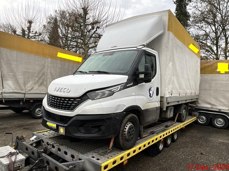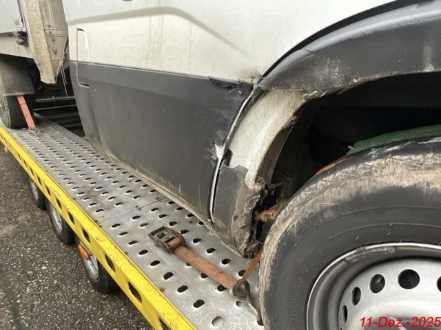 | Schadensbeschreibung | Beschreibung der Schäden: Der Kotflügel links und rechts, das Kniestück, die Seitentüre rechts, der Aufbau vorne und hinten sind deformiert. Die Stossstange vorne, die Kotflügelabdeckung, die Türabdeckung, der Aussenspiegel rechts sind gerissen. Motorschaden. |
