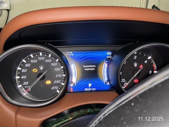 Aussenspiegel rechts und links beheizt, elektrisch verstell- / und einklappbar, Bluetooth Freisprecheinrichtung, Active Sound (Abgas-Soundsystem), Höhenverstellbare Gurten vorne, Allradantrieb permanent, Mittelarmlehne hinten mit USB, Beleuchtetes Handschuhfach, Fahrer-Informationssystem mit Farbdisplay, Zentralverriegelung mit Fernbedienung, Fahrprofilauswahl, Fahrlichtautomatik, Veloursfussmatten vorne und hinten, Heckscheibenheizung, Leder-Multifunktionslenkrad im 3-Speichen-Design, Bi-Xenon-Scheinwerfer mit automatischer Höheneinstellung, Automatische Heckklappenbetätigung, Türgriffe aussen verchromt, Rücksitzlehne geteilt abklappbar, Applikationen in shiny-black, Touchscreen, Maserati Touch Control Plus (MTC+), Keyless Entry, TPMS Reifendrucküberwachungssystem, Berganfahrassistent, Ladekantenschutz, 12 Volt-Steckdose im Laderaum, Gurtstraffer mit Gurtkraftbegrenzer vorne, Stopp-/Start-System, Applikationen Chrom, Antriebsschlupfregelung (ASR), Bottleholder in Mittelkonsole, Elektronisches Stabilitäts-Programm (ESP), Einstiegsschienen, LED-Tagfahrlicht, Bremsassistent (BAS), Assist: Bergabfahrassistent, Aussenspiegel automatisch abblendend, Steckdose 12V, Airbag: Fahrer und Beifahrer, Bremssättel mattgrau lackiert, Pollenfilter (Staubfilter), Lenkrad längs- und höhenverstellbar, Airbag: Airbag Beifahrer deaktivierbar, Digitales Radio (DAB), 2-Zonen-Klimaautomatik, Cupholder, Audiosystem, USB-Anschluss, Bordcomputer, Geräusch- und Wärmeschutzverglasung, Innenraumbeleuchtung, Beifahrersitz 4fach manuell verstellbar, Zuheizer, Dämpferregelung, Innenspiegel automatisch abblendbar, Mittelkonsole mit Ablagefach, Drittes Bremslicht, Drehzahlmesser, Handschuhfach gekühlt, Wassertemperaturanzeige, Media: 8 Lautsprecher, Start-/Stop-Knopf, Kartentaschen an den Rückenlehnen, Reifenreparatur-Set, Tempomat, Fahrwerk: Adaptive Luftfederung, Seitenairbag für Fahrer und Beifahrer, 12-Volt-Steckdose hinten, Laderaumabdeckung, Nebelschlussleuchte, Skisack, Tageskilometerzähler, Partikelfilter und Oxydationskatalysator, Analog-Uhr, Lackierung: Uni-Lackierung, LED Heckleuchten, Audiofernbedienung am Lenkrad, Kopfstützen vorne und hinten mit Logo, Sonnenblende zweifach, Servolenkung geschwindigkeitsabhängig, Elektrische Fensterheber vorne und hinten mit Komfortbetätigung und Einklemmschutz, Blinker in Aussenspiegel, Klappdeckel für Ablagefach, Fahrersitz elektrisch verstellbar, KEYLESS GO, Mittelarmlehne vorne, mit 2 Getränkehaltern, Kindersicherung im Fahrgastraum, Intelligenter Allradantrieb, Aussentemperaturanzeige, Torque Vectoring, Regen- und Dämmerungssensor, Wegfahrsperre elektronisch, Getriebe: 8-Stufen-Automat sequentiell, 3-Punkt-Sicherheitsgurte auf allen Plätzen, LED Nebelscheinwerfer, Elektronisch gesteuerte Kühlerjalousie, Window-Kopfairbags, ABS, EBD elektronische Bremskraft- verteilung, Wärmeschutzverglasung, Gepäcknetz(e), Leder-Ausstattung, Türgriffe aussen beleuchtet für Einstiegsbereich, Fussraumbeleuchtung, Ablagen in den Türen, Beide Make up-Spiegel beleuchtet, Heckspoiler, Dachhimmel, Assist: Elektronische Parkbremse, ISOFIX Kindersitzvorrichtung, Cupholder hinten, Heckscheiben-Wisch-/Waschanlage, Laderaumbeleuchtung