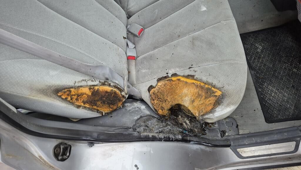| Opis uszkodzen: | Siège, panneau de porte et torche brûlés |