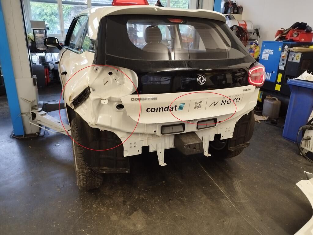 | Opis uszkodzen: | Die Stossstange vorne rechts unten hat Kratzspuren, die Felge vorne rechts ist deformiert, der Reifen vorne rechts ist gerissen, die Spurstange rechts ist abgerissen, die Antriebswelle rechts ist ausgerissen, diverse Aufhängungsteile rechts sind deformiert. Die Stossstange hinten links hat Kratzspuren und ist gerissen, die Seitenwand hinten links ist deformiert und gestaucht, die Heckklappe ist deformiert, das Schlussleuchtenblech links ist deformiert. Weitere Details zum Schadenfall gehen aus den beiliegenden Fotos hervor. |