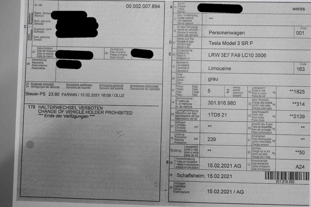 | Offensichtlicher Totalschaden CH-Typengenehmigung | |
