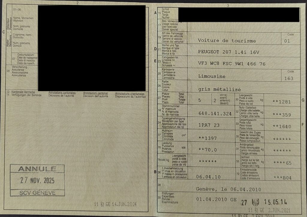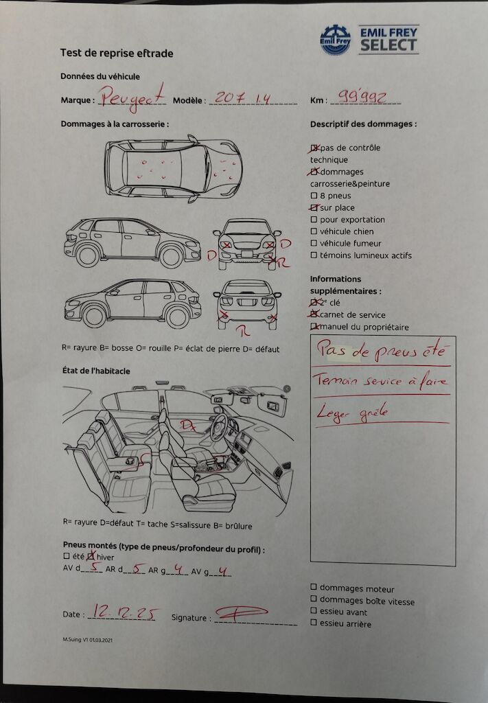 | Koszt naprawy: | 0.00 CHF |