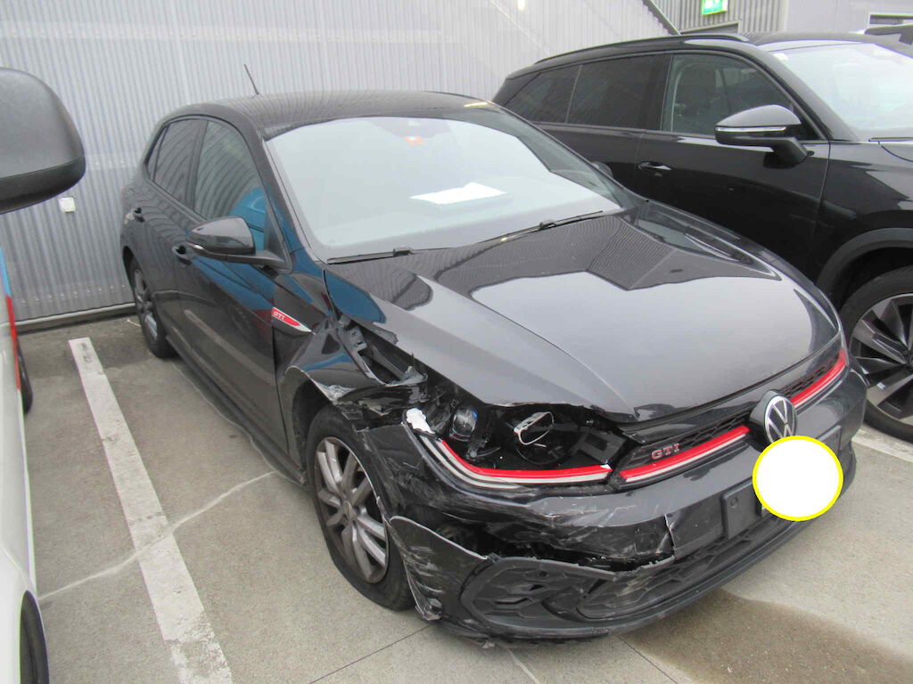| VW Polo GTI DSG mit 65000km. Motor startet und Getriebe i.O. Radaufhängung VR beschädigt. Sommerräder sind vorhanden und 2 Schlüssel | |