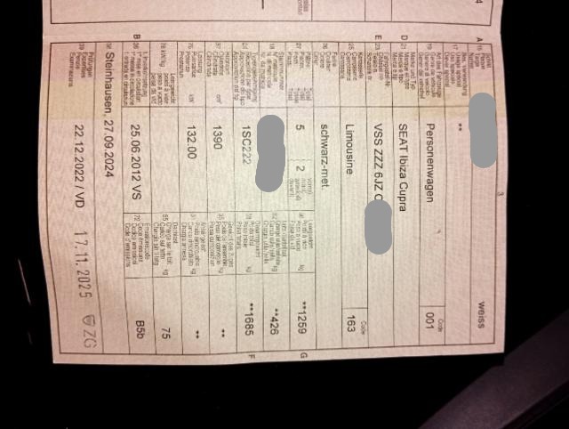 | VIN | VSSZZZ6JZCR****** | Reifenprofil in %: | |