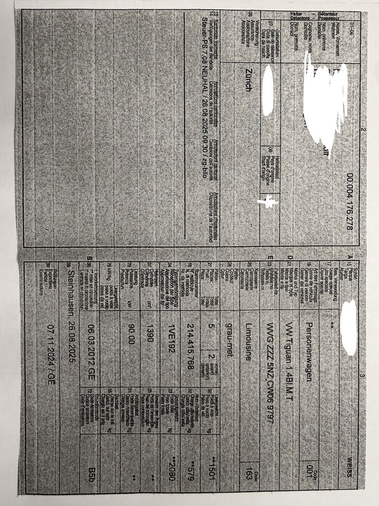 | Koszt naprawy: | 0.00 CHF |