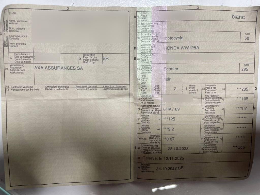 | Fahrzeugausweis | Vorhanden |