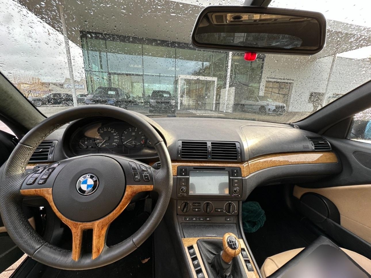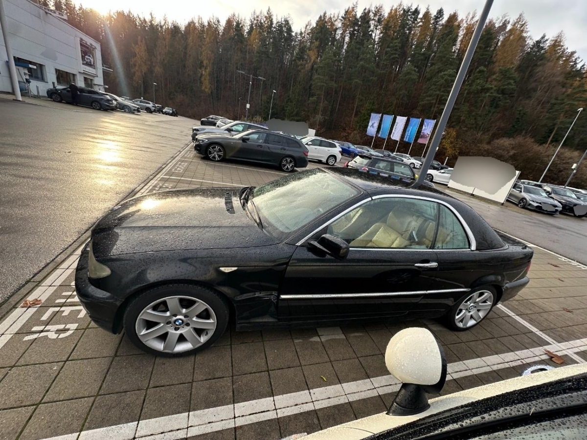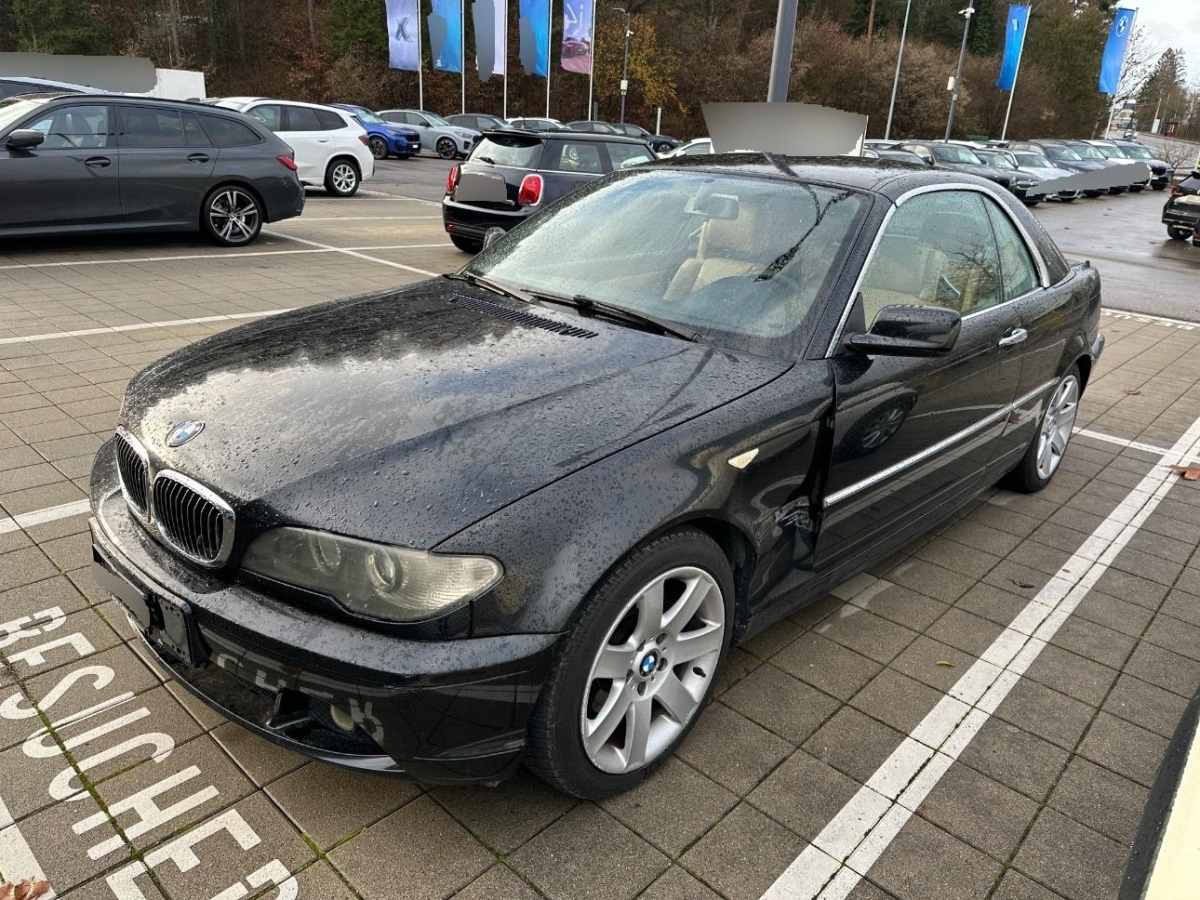 Sportlenkrad und Schalthebelgriff in, Dynamische Stabilitätskontrolle (DSC), Elektrische Fensterheber vorne + hinten, Seitenschutz-Zierleisten, Nebelscheinwerfer, Wegfahrsperre elektronisch, Stossstangen und Aussenspiegel in Wagenfarbe, Tageskilometerzähler, Oelstandsanzeige, Drittes Bremslicht, Höhenverstellbare Gurten vorne, Beleuchtetes und abschliessbares Handschuhfach, Mittelarmlehne hinten, Zentralverriegelung mit Fernbedienung, Grün getönte Scheiben, Elektronische Differentialsperre (ADB), Beide Make up-Spiegel beleuchtet, Lenkrad: Lenkrad längs- und höhenverstellbar, Scheibenwischer vorne mit Intervall, Zweiklanghorn, Automatische Stabilitäts- und Traktions- kontrolle, Scheibenwaschdüsen beheizt, Bremsassistent (BAS), Pollenfilter (Staubfilter), Mittelkonsole mit Ablagefach, Licht: Nebelschlussleuchte, Katalysator geregelt, Lichtwarnsummer, Antiblockiersystem (ABS), Ecometer, Aussenspiegel rechts und links beheizt und elektrisch verstellbar, asphärisch gewölbtes Spiegelglas, Gepäcknetze an beiden Vordersitzen, Bordcomputer, Digital Uhr, Leseleuchten vorne, Innenraumlicht-Paket, Überrollschutzsystem, Check-Control-System, 4 Leichtmetallfelgen im Ellipsoid- styling 46 16J mit Pneu, Bavaria C Reverse RDS mit Antenne, Ent- störung und 4/6 LS, Kopfstützen hinten, Aussentemperaturanzeige, Innenlicht-Abschaltverzögerung, Vordersitze höhenverstellbar, Airbag: Airbag Fahrer und Beifahrer, Vordersitze elektrisch verstellbar, Spezielle Stoff-Ausstattung, Wartungsintervall-Anzeige, Wassertemperaturanzeige, Vollautomatisches Verdeck, Klimatisierungsautomatik, Lenkung, elektrisch unterstützt, Drehzahlmesser, Seitenairbags, Assist: Cornering Brake Control (CBC), 5-Gang-Getriebe, ISOFIX Kindersitzvorrichtung, Gurtstraffer vorne, Applikationen glänzend, Lackierung: Uni-Lackierung, Leuchtweitenregulierung elektrisch