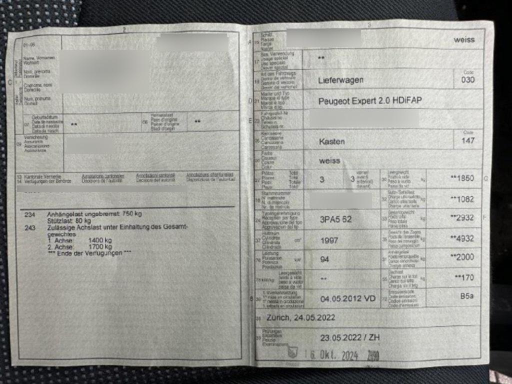 | Fahrzeugausweis | Vorhanden |