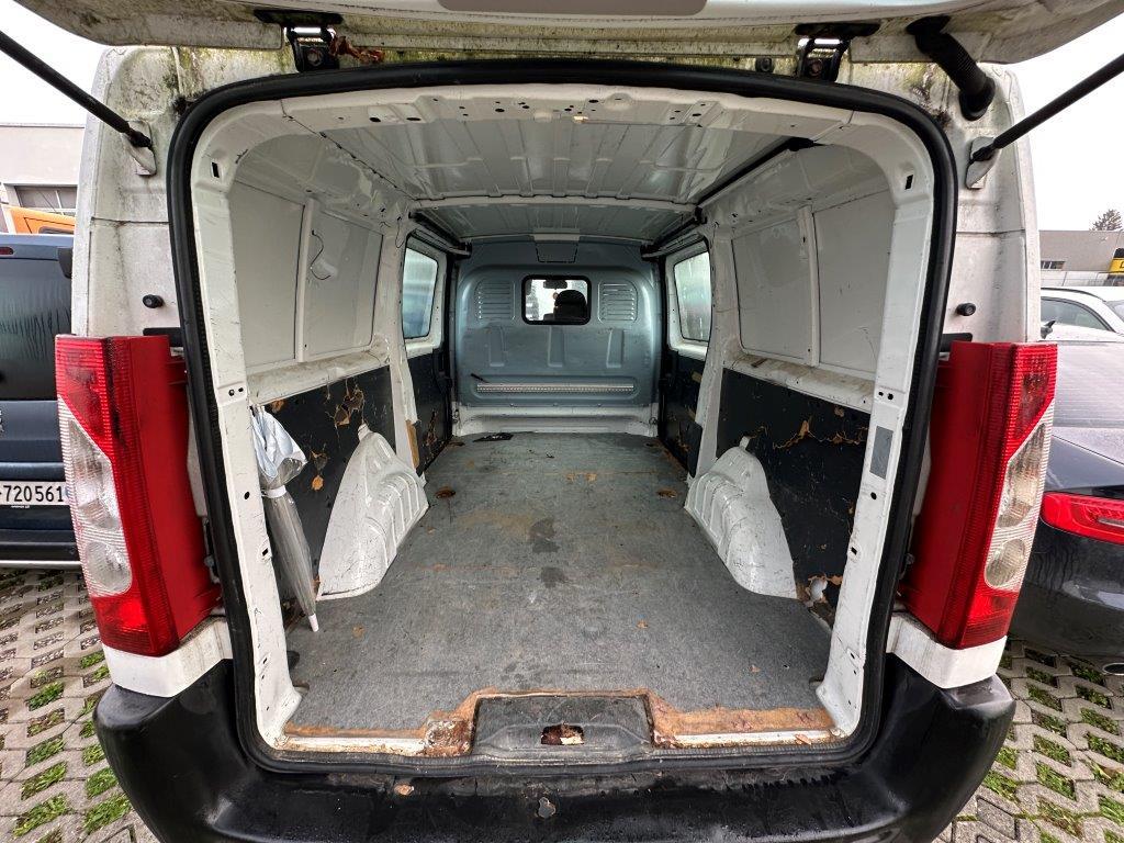 Digital Uhr, Drehzahlmesser, Scheibenwischer vorne mit Intervall, Räder: Reserverad, Schutzvorrichtung mit Stahlrohren hinter dem Fahrer, Staufach unter den Vordersitzen, Kühlergrill verchromt, Befestigungsösen im Laderaum, Partikelfilter und Oxydationskatalysator, Kopfstützen hinten, Sitze: Kopfstützen vorne höhenverstellbar, Türen: Flügeltüren hinten 180, verblecht, Tageskilometerzähler, Gurtstraffer vorne, Wegfahrsperre elektronisch, Schiebetüre rechts, Sitze: Beifahrer Doppelsitzbank, Getönte Scheiben, Lenkrad längs- und höhenverstellbar, Laderaumbeleuchtung, Media: Radiovorbereitung und Entstörung, Tankdeckel abschliessbar, Steckdose im Kofferraum, Antiblockiersystem (ABS), Leuchtweitenregulierung von innen, Polster: Stoff-Ausstattung, Ablagefach im Dachbereich, Beleuchtetes und abschliessbares Handschuhfach, Höhenverstellbare Gurten vorne, Getriebe: 6-Gang Schaltgetriebe, Airbag: Airbag Fahrerseite, Steckdose, Aussenspiegel rechts und links beheizbar und elektrisch verstellbar, Zentralverriegelung mit Fernbedienung, Elektrische Fensterheber vorne, Assist: Bremsassistent (BAS), Wassertemperaturanzeige, Cupholder vorne, Servolenkung geschwindigkeitsabhängig