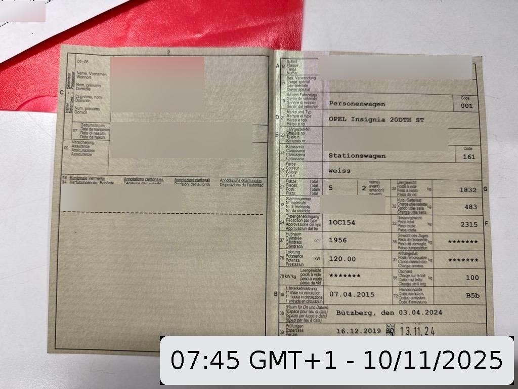 | Fahrzeugausweis | Vorhanden |