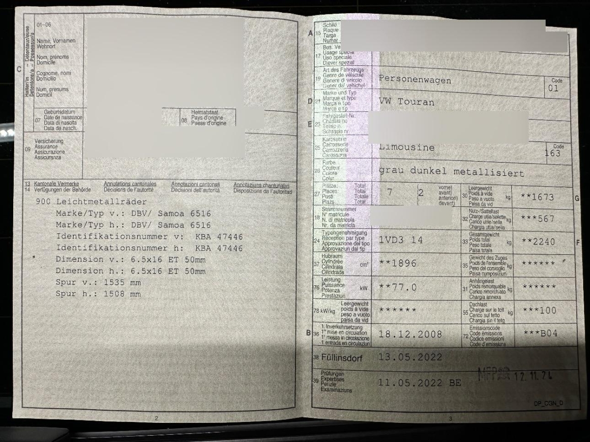 | Fahrzeugausweis | Vorhanden |