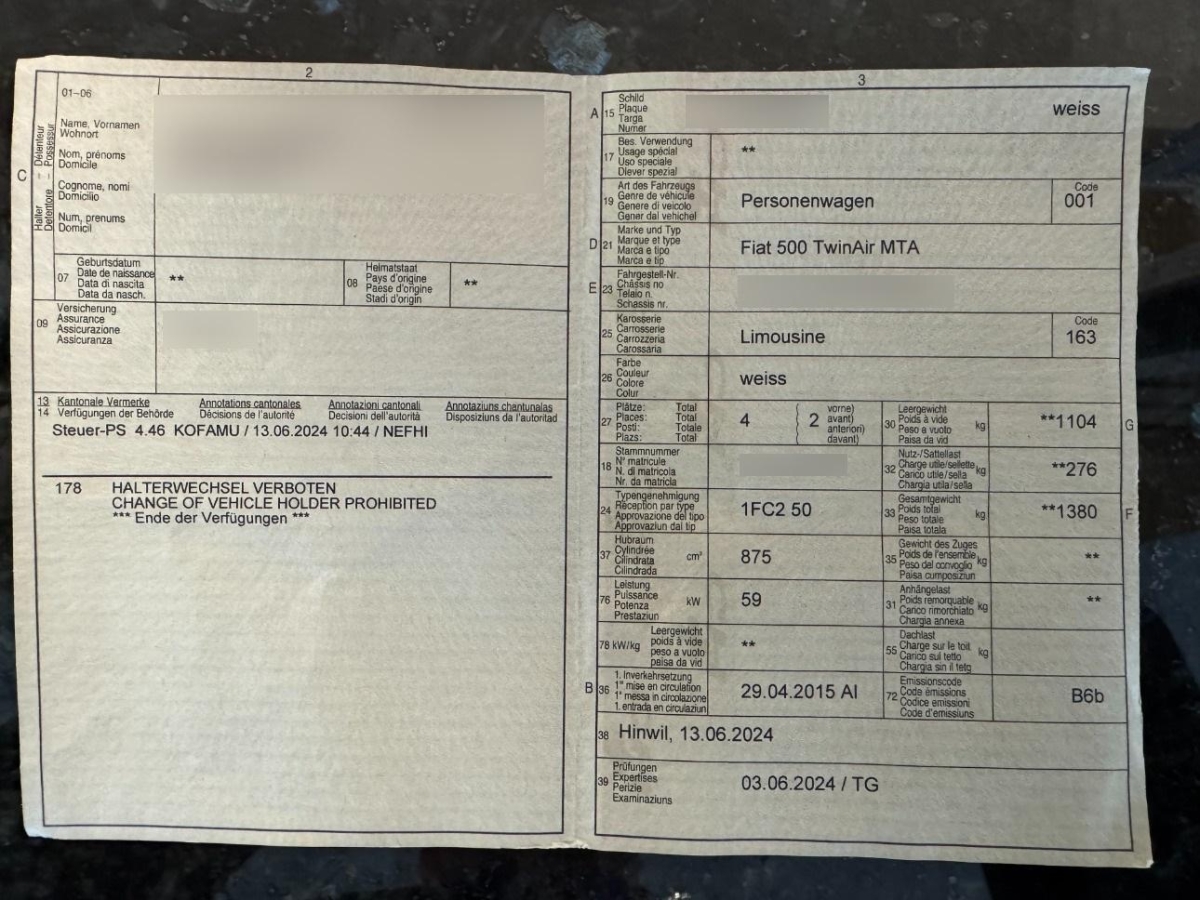 | Fahrzeugausweis | Vorhanden |