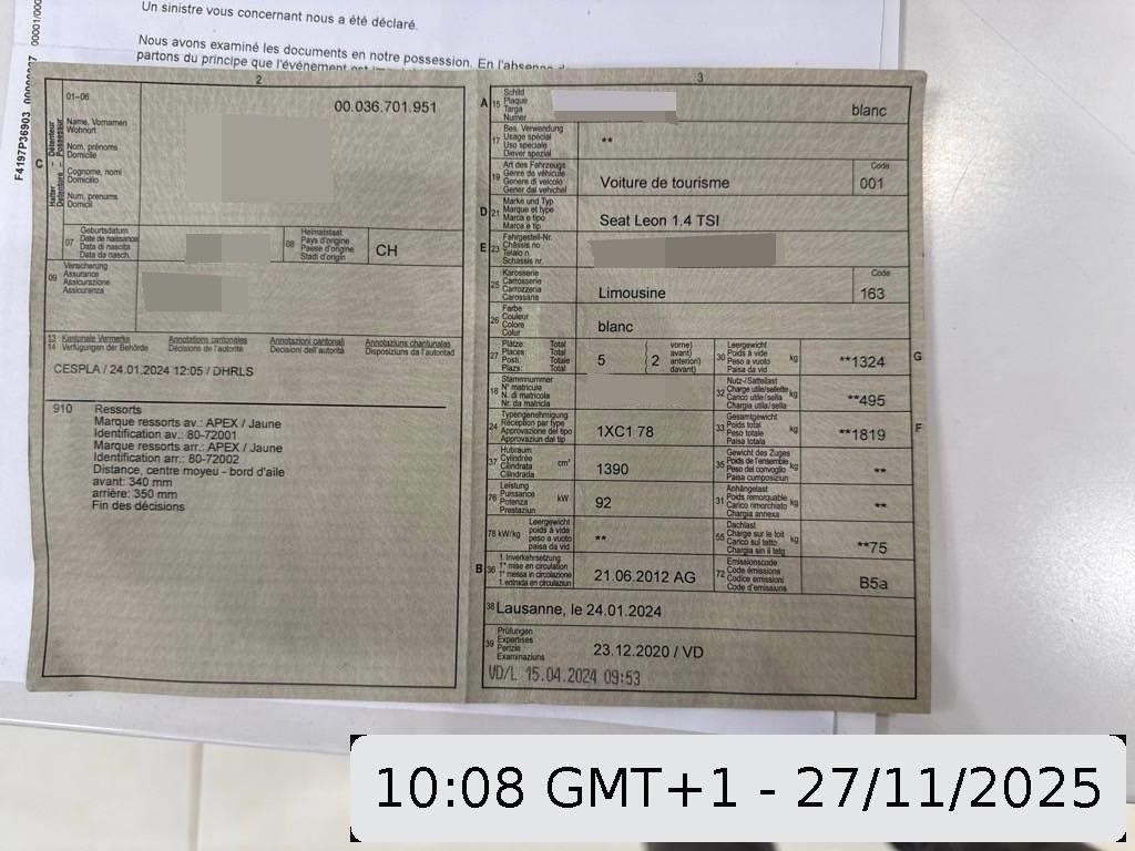 Die (vom Fahrzeugexperten) ermittelten Reparaturkosten beziehen sich auf das versicherte Ereignis. Allfällige zusätzliche, nicht versicherte Schäden/Vorschäden, sind in den Reparaturkosten nicht enthalten. Die deklarierten Ausstattungsmerkmale können von der effektiven Ausstattung abweichen.