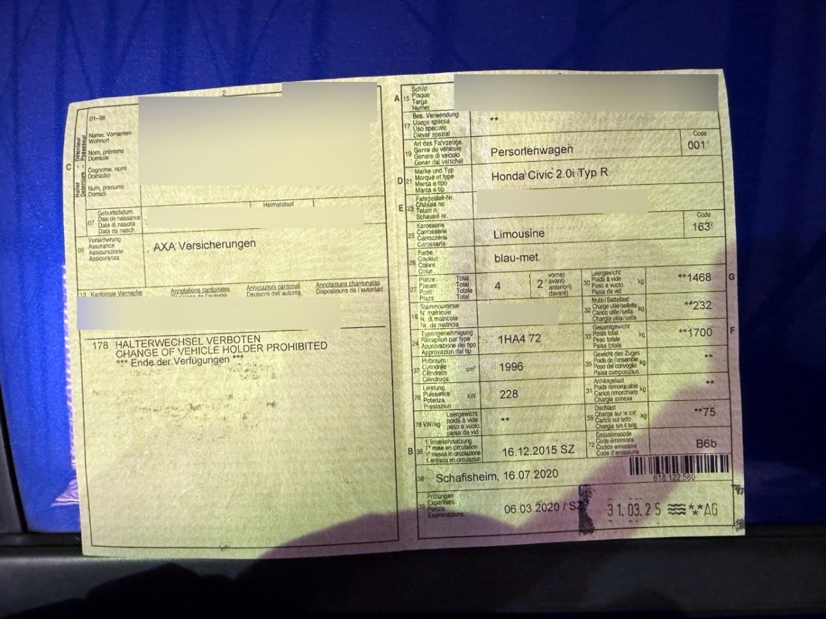| Fahrzeugausweis | Vorhanden |