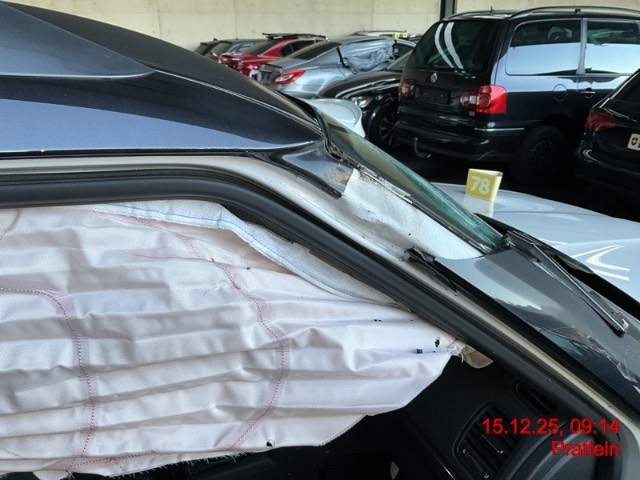 | Schadensbeschreibung | Beschreibung der Schäden: Stossfänger, Prallträger, Pralldämpfer, Kühler Paket, Scheinwerfer rechts, Nebellampe rechts, Motorhaube, Kotflügel, Reifen vorne rechts, A-Säule, Dachrahmen, Tür vorne, rechts, Tür hinten rechts, Schweller rechts, B Säule rechs, Seitenwand rechts, Stossfänger hinten, Schlussleuchte rechts deformiert/gebrochen/zerkratzt Airbag: Fahrer und Beifahrer, Kopfairbag rechts, Seitenairbag rechts ausgelöst. Gurtstraffer: Fahrer und Beifahrer ausgelöst Motorkante bei der Besichtigung gestaltet werden. Jedoch kommen ein Gefällemeldungen in Bezug auf Kühlmittel und Scheibenwasser. Die Motorhaube konnte bei der Besichtigung nicht geöffnet werden. |