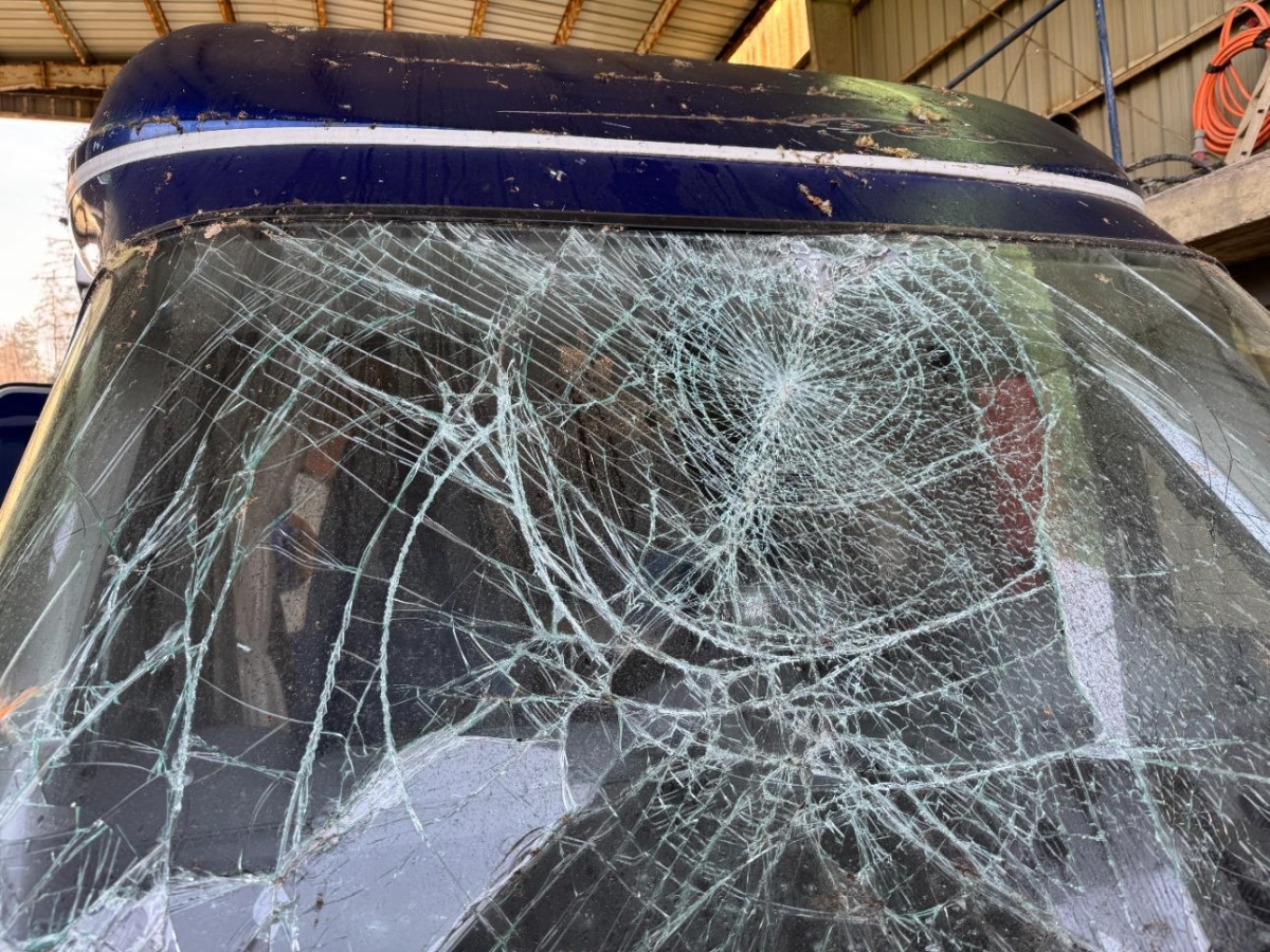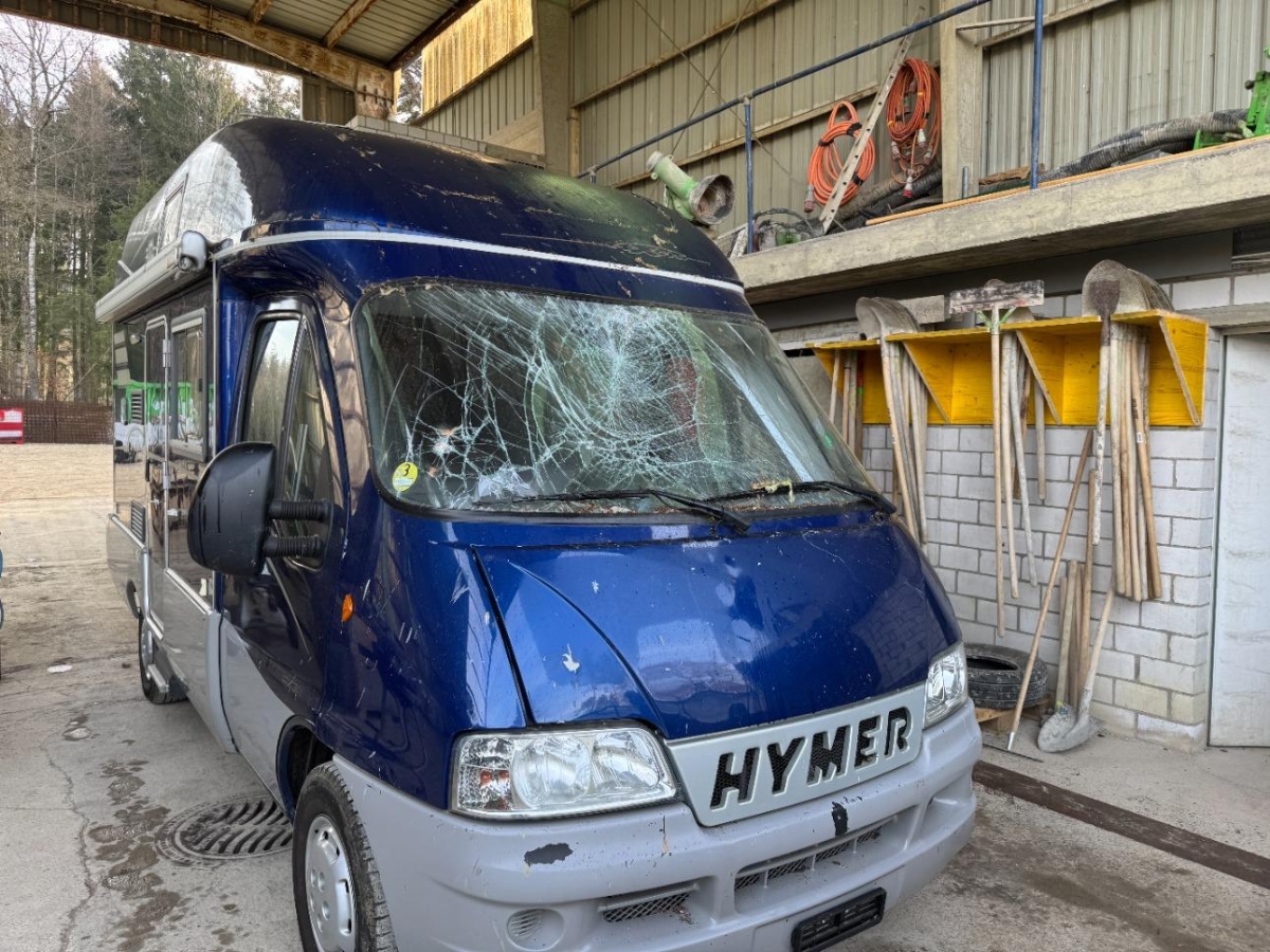 Das Fahrzeug wurde durch die Druckwelle nach einer Explosion durch herumfliegende Teile rundum beschädigt.