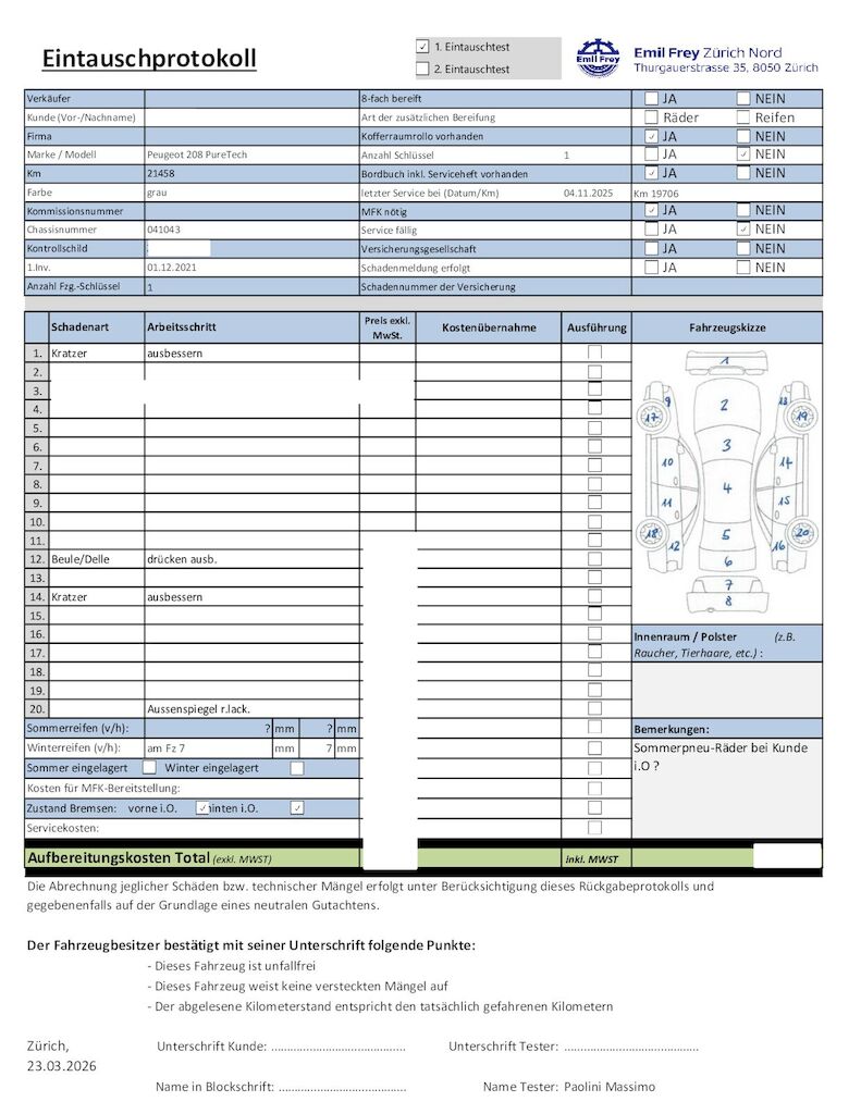 | Koszt naprawy: | 0.00 CHF |